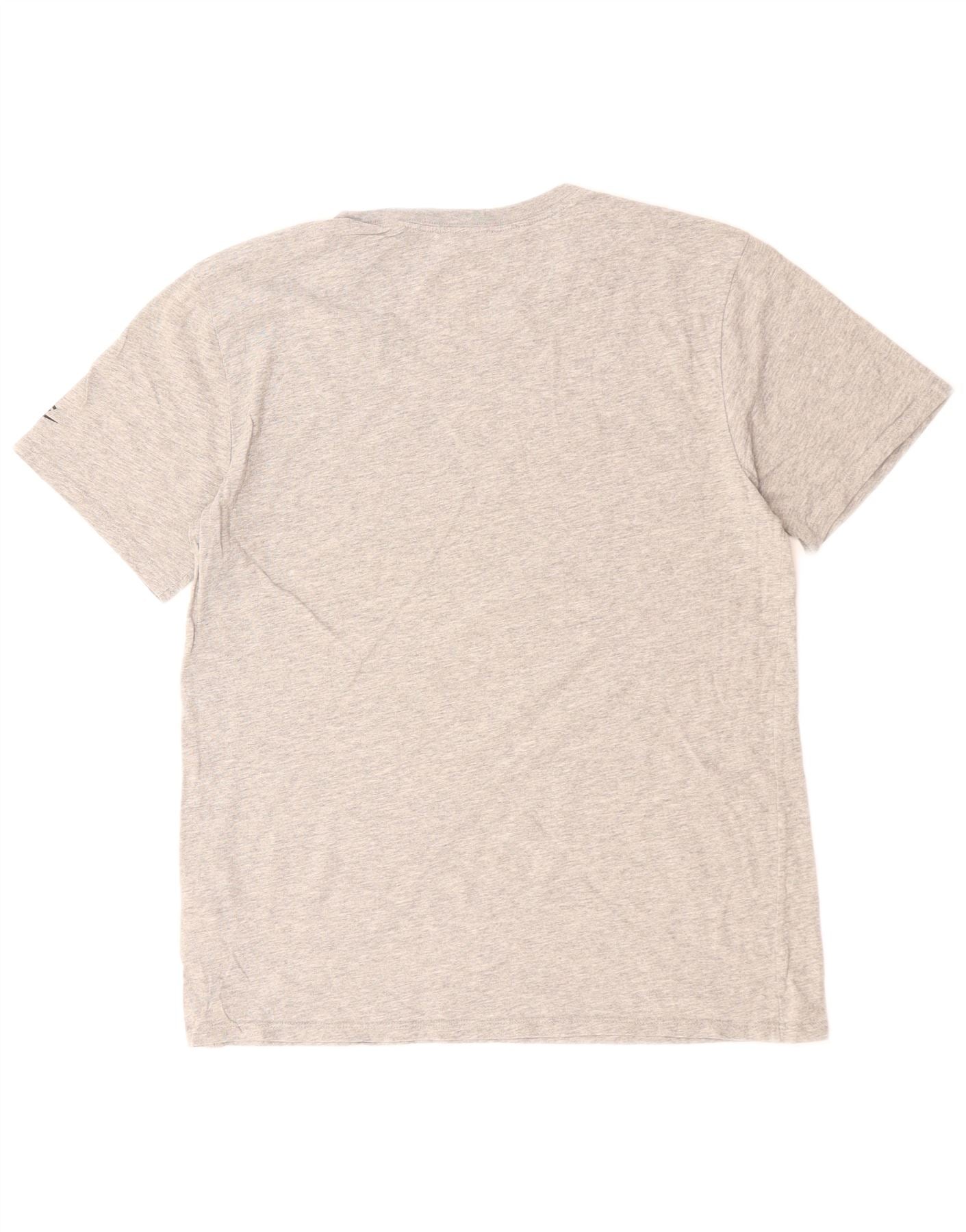 NIKE Dame atletisk snit grafisk T-shirt top UK 14 stor grå bomuld