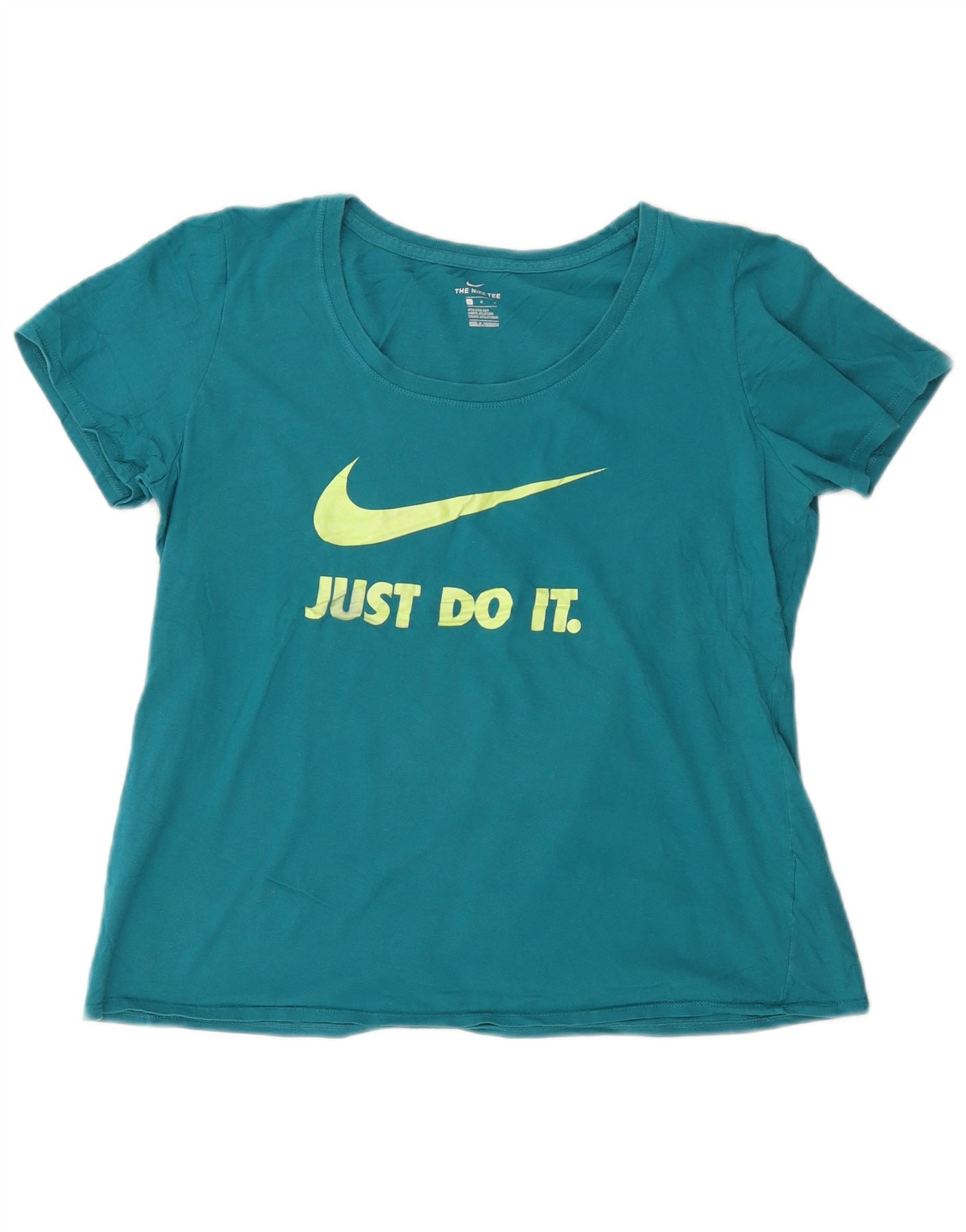 NIKE Dame atletisk snit grafisk T-shirt top UK 16 Stor blå bomuld