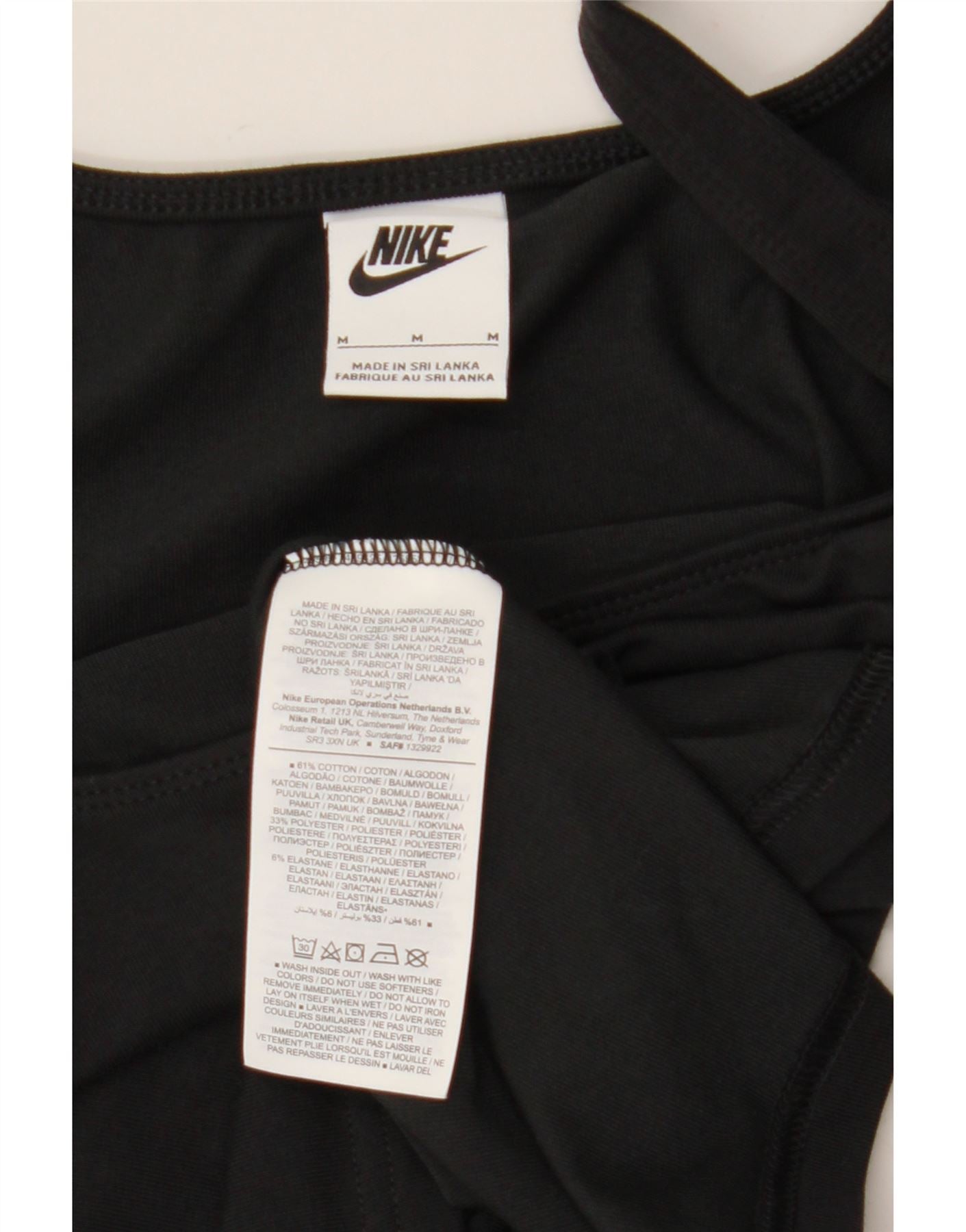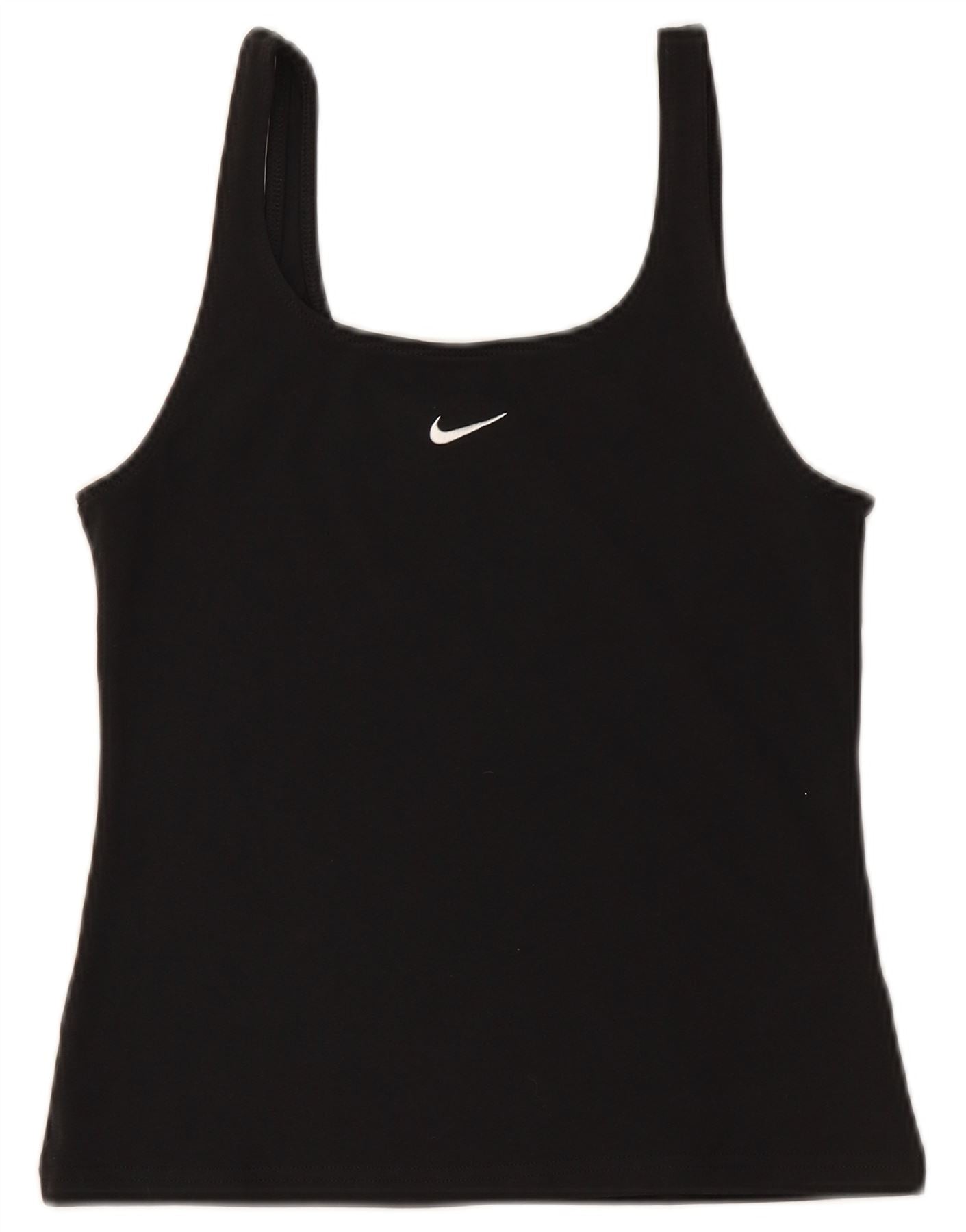 NIKE Dame Crop Cami Top UK 12 Medium Sort Bomuld