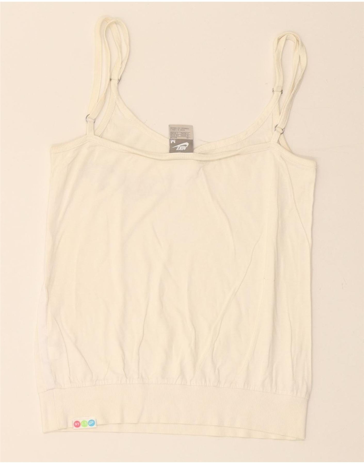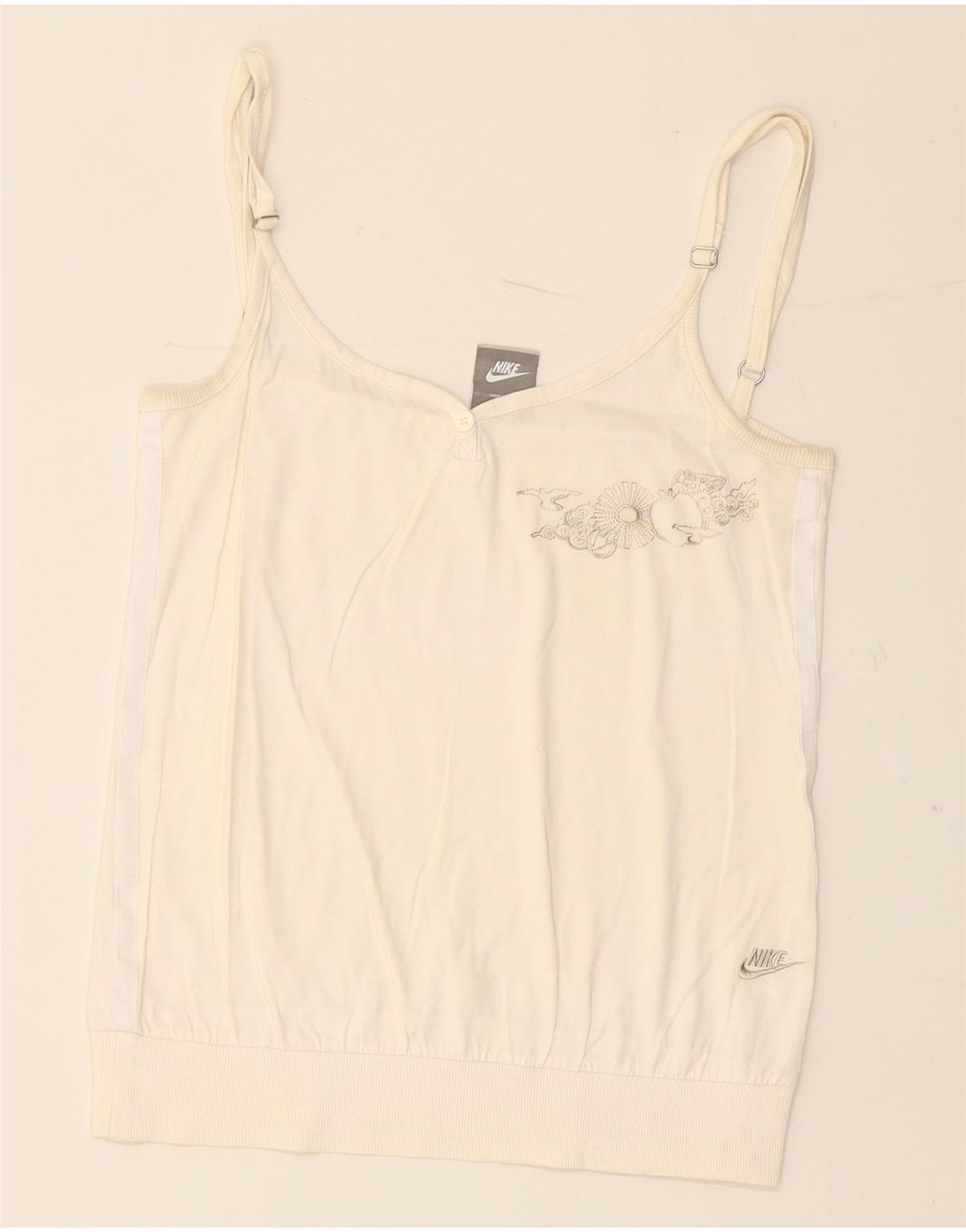 NIKE Womens Crop Graphic Cami Top UK 10/12 Medium Off White