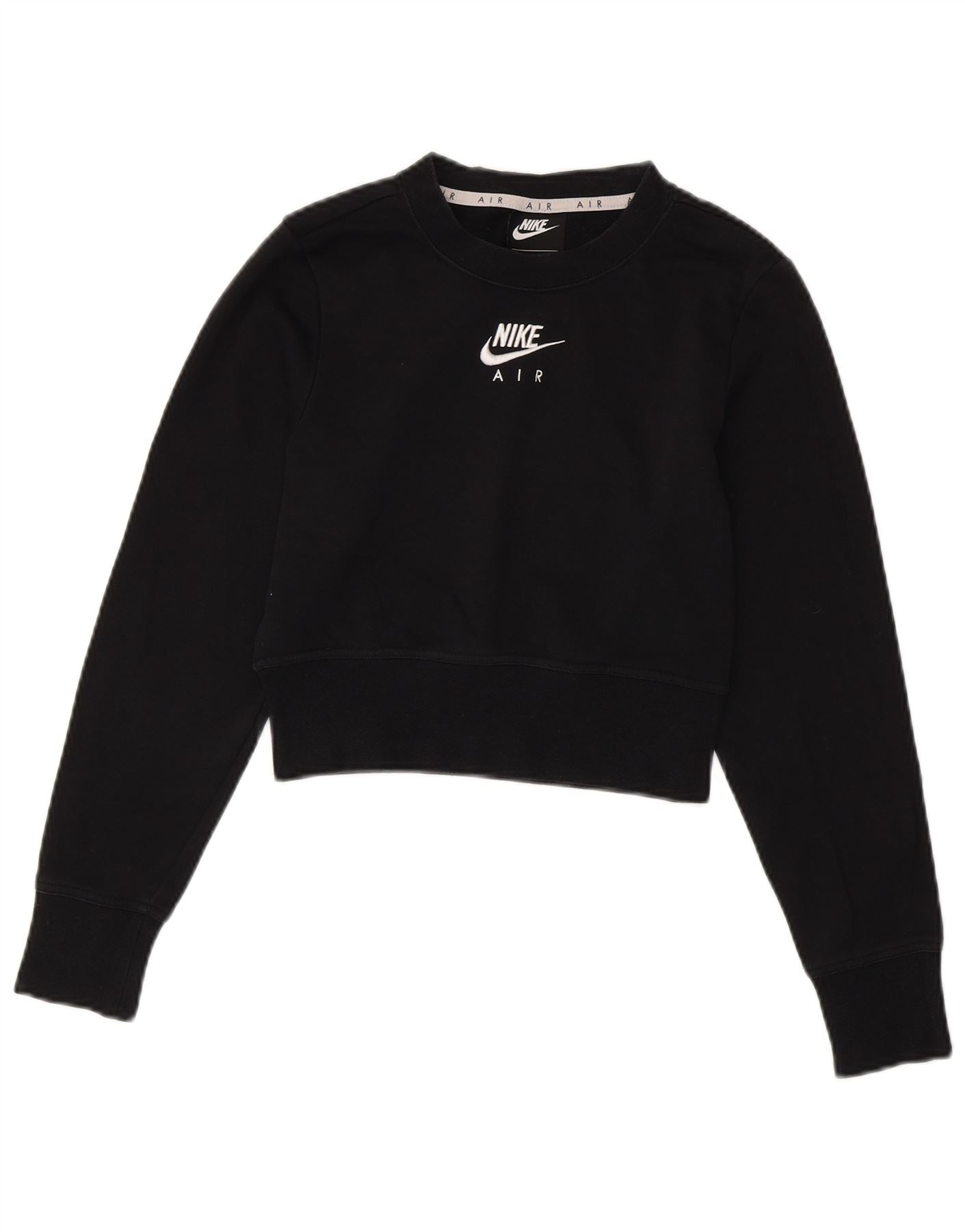 NIKE Womens Crop Graphic Sweatshirt Jumper UK 6 XS Sort bomuld