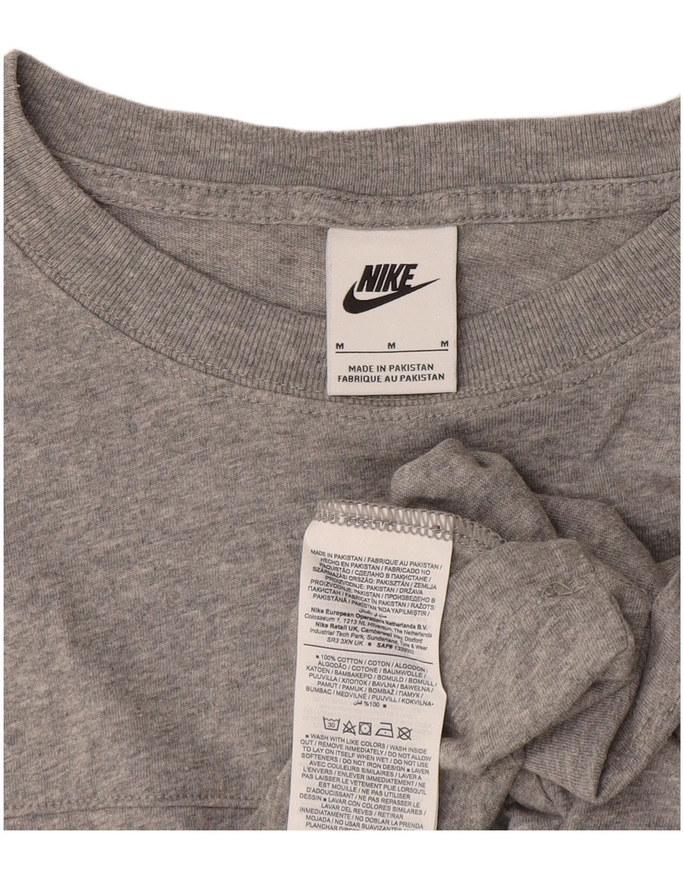NIKE Dame Crop Graphic T-Shirt Top UK 14 Medium Grey Colourblock Bomuld