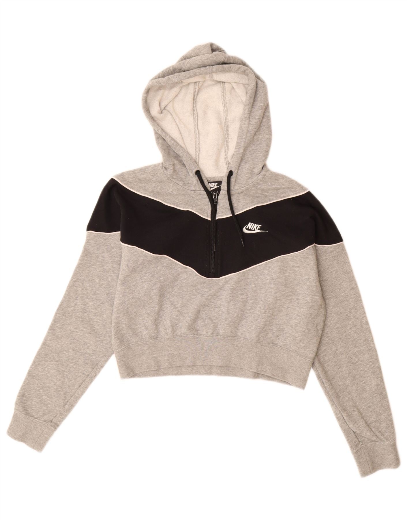 NIKE Crop hættetrøje til kvinder UK 14 Medium Grey Colourblock Bomuld