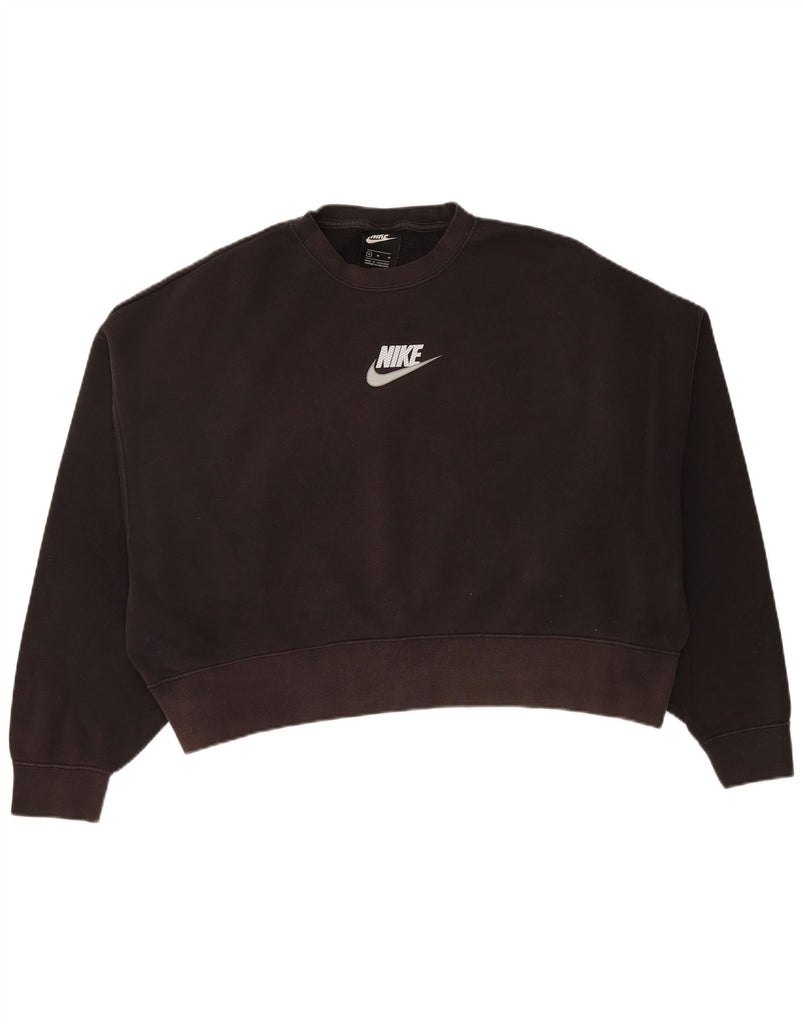 NIKE Womens Crop Oversized Sweatshirt Jumper UK 14 Medium Black Cotton