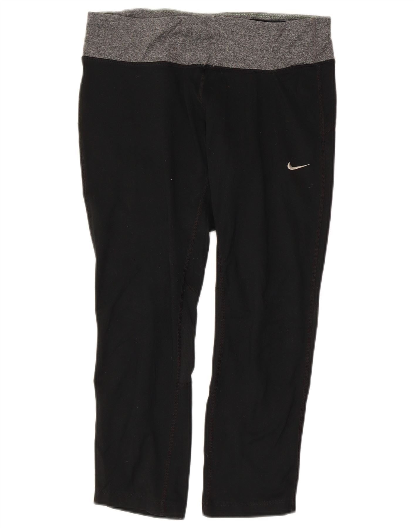 NIKE Dame Dri Fit Capri Leggings UK 10 Small Black Colourblock