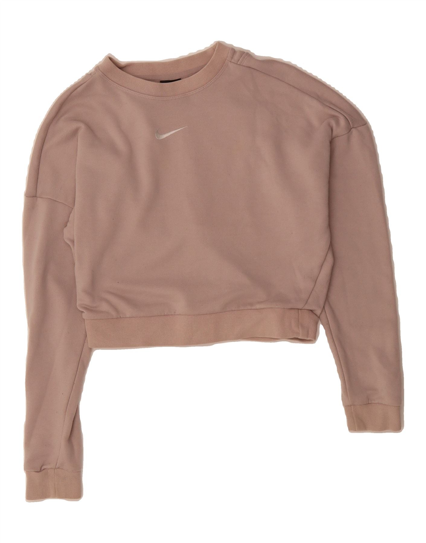 NIKE Womens Dri Fit Crop Oversized Sweatshirt Jumper UK 10 Small Pink