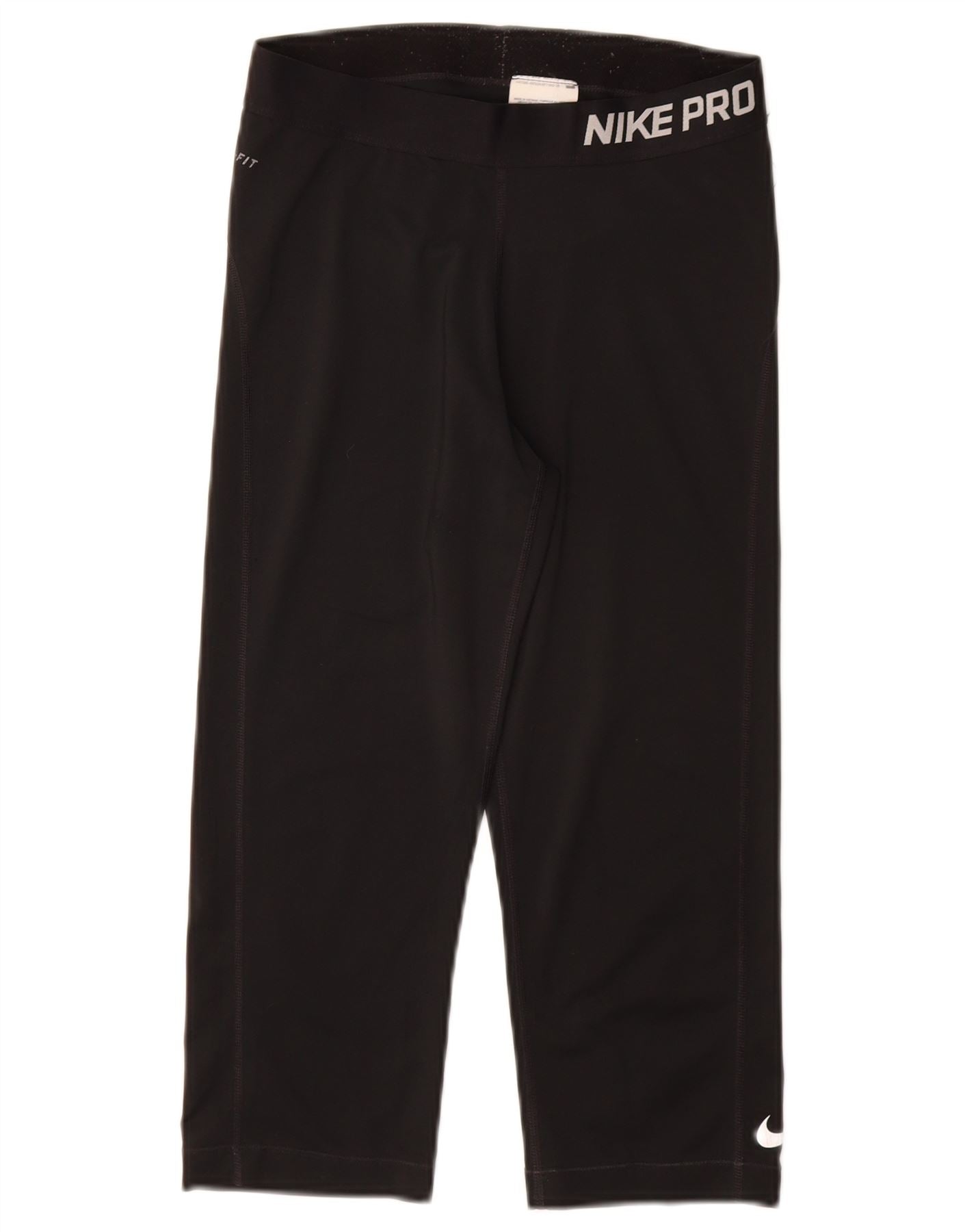 NIKE Dame Dri Fit Grafiske Capri Leggings UK 12 Medium Sort Polyester