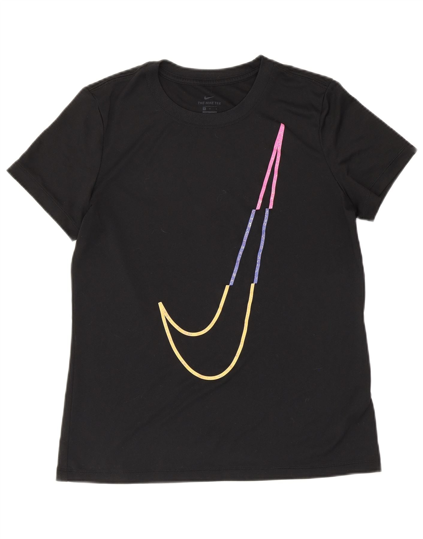 NIKE Dame Dri Fit grafisk T-shirt Top UK 14 Medium Sort Polyester