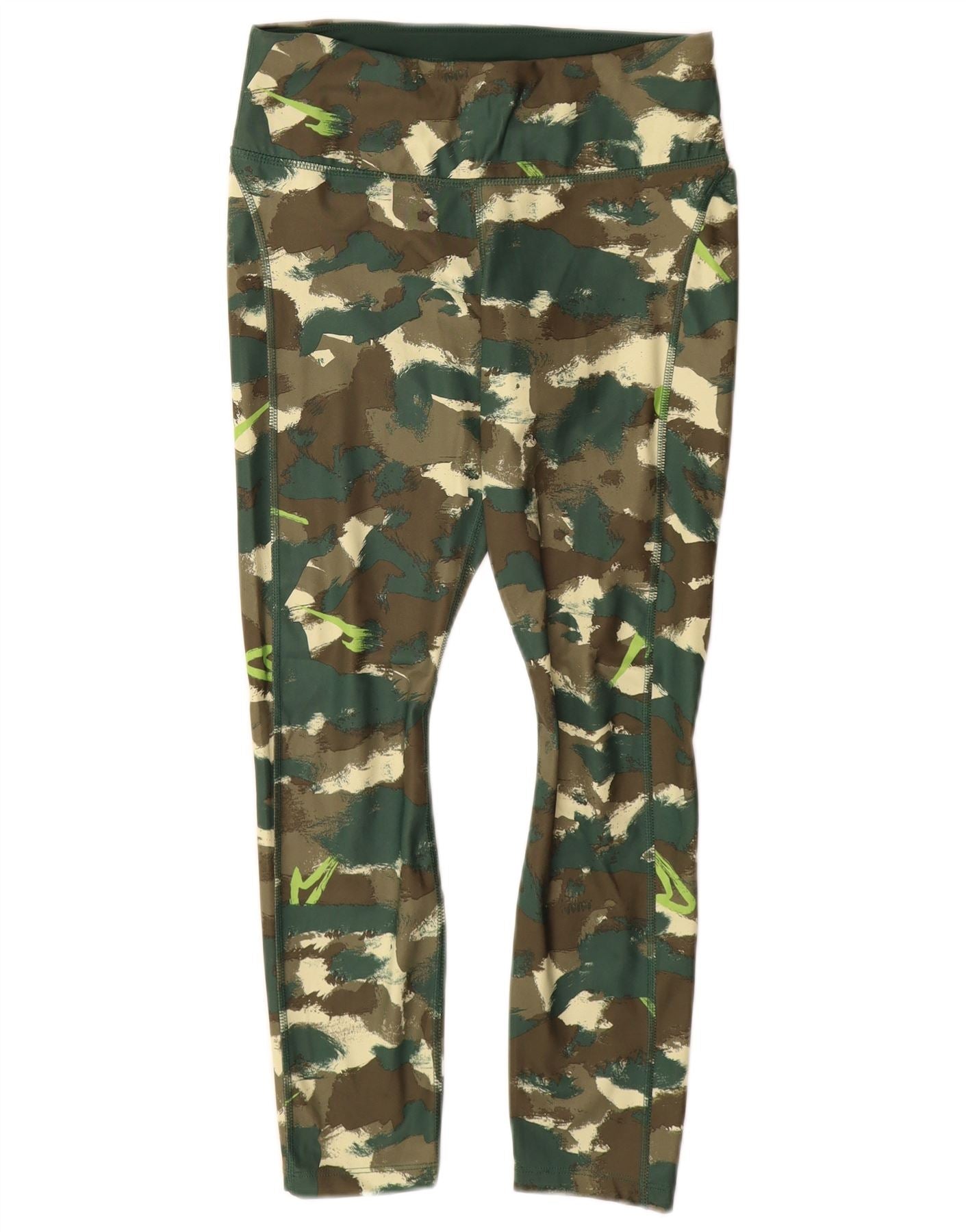 NIKE Dame Dri Fit Leggings UK 12 Medium Green Camouflage Polyester