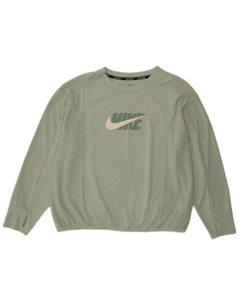 NIKE Womens Dri Fit Oversized Graphic Top Long Sleeve UK 18 XL Green