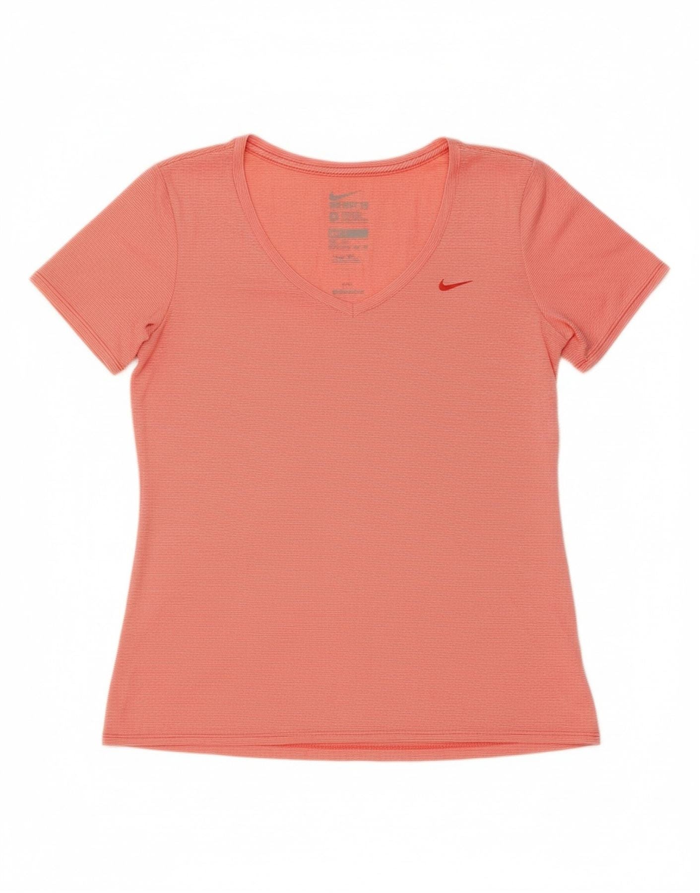 NIKE Womens Dri Fit T-Shirt Top UK 12 Medium Red Pinstripe Polyester