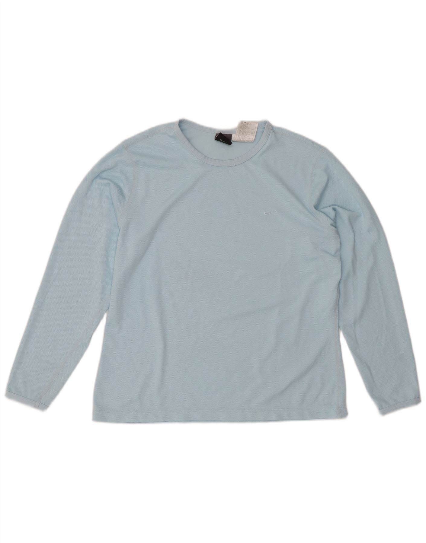 NIKE Dame Dri Fit Top Langærmet US 12/14 Large Blue Polyester
