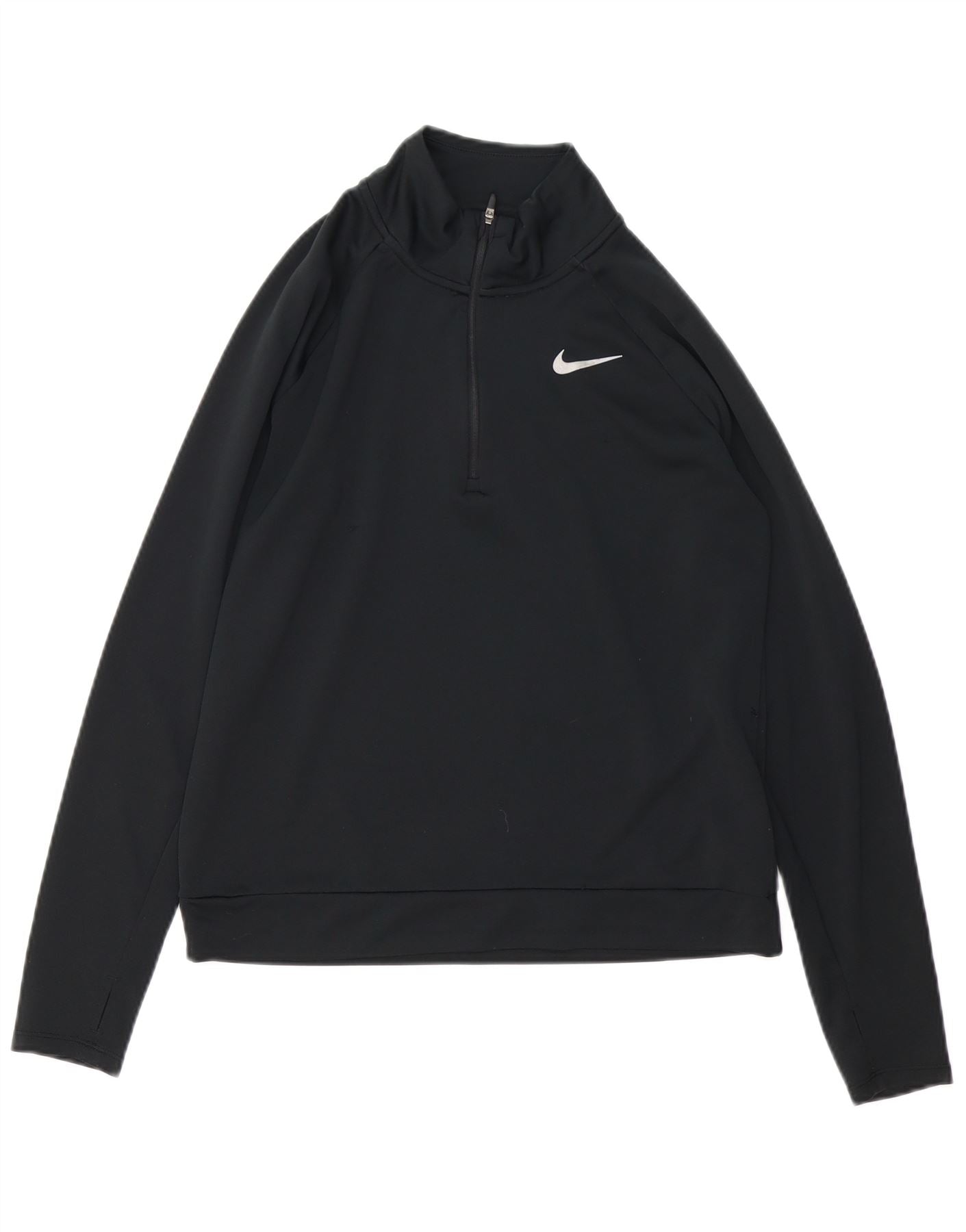 NIKE Dame Dri Fit Pullover med lynlås-hals Træningsdragt Top UK 10 Lille Sort