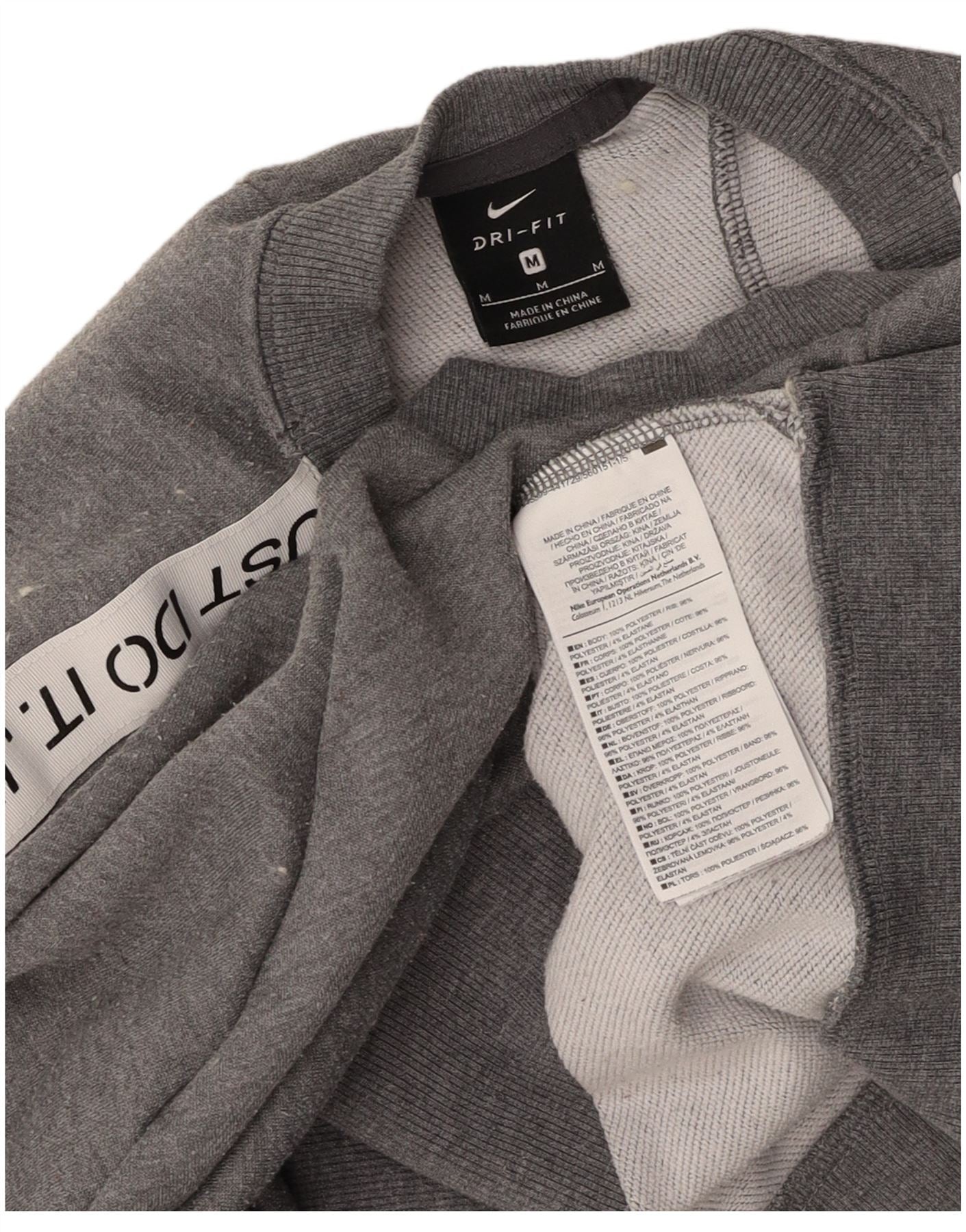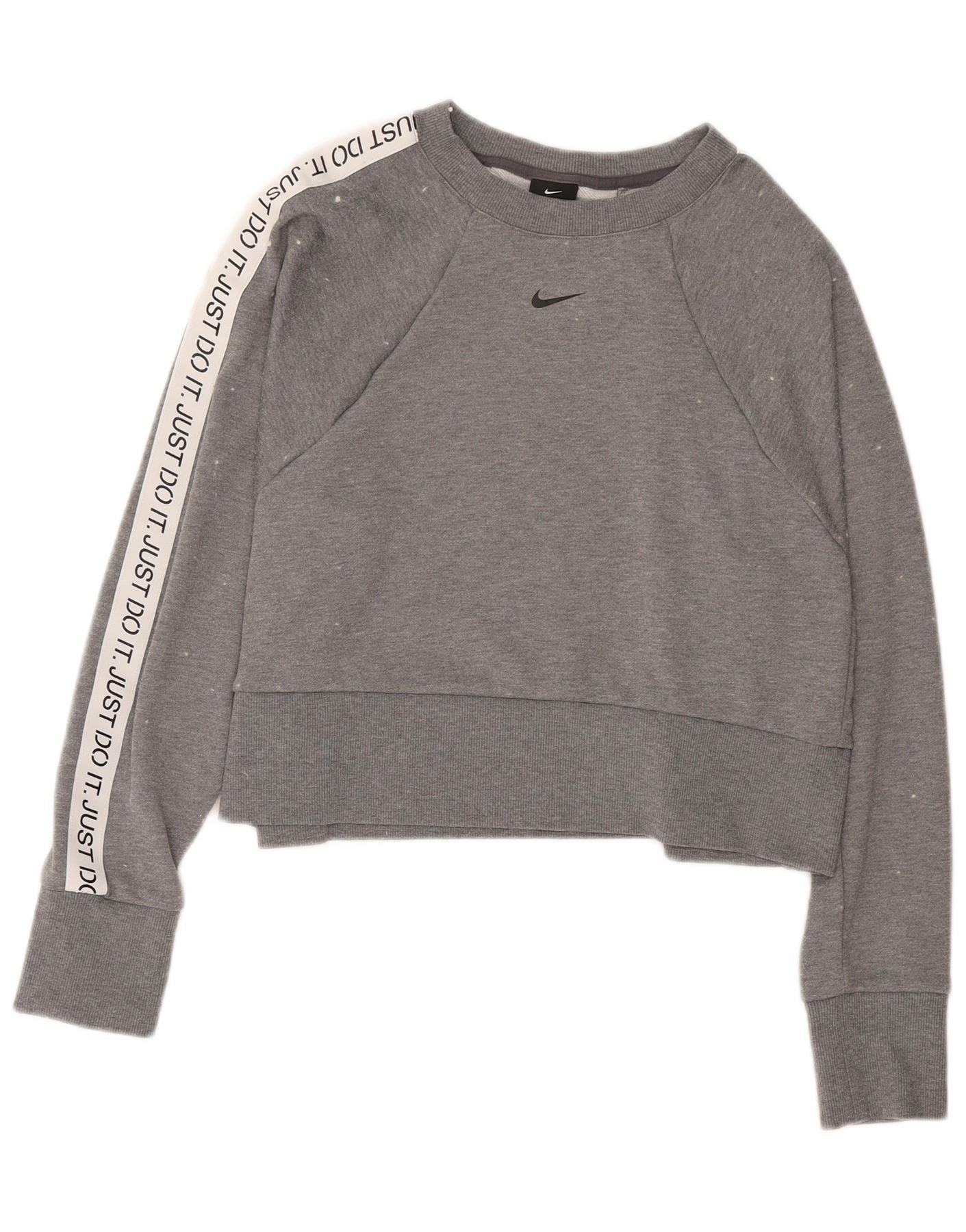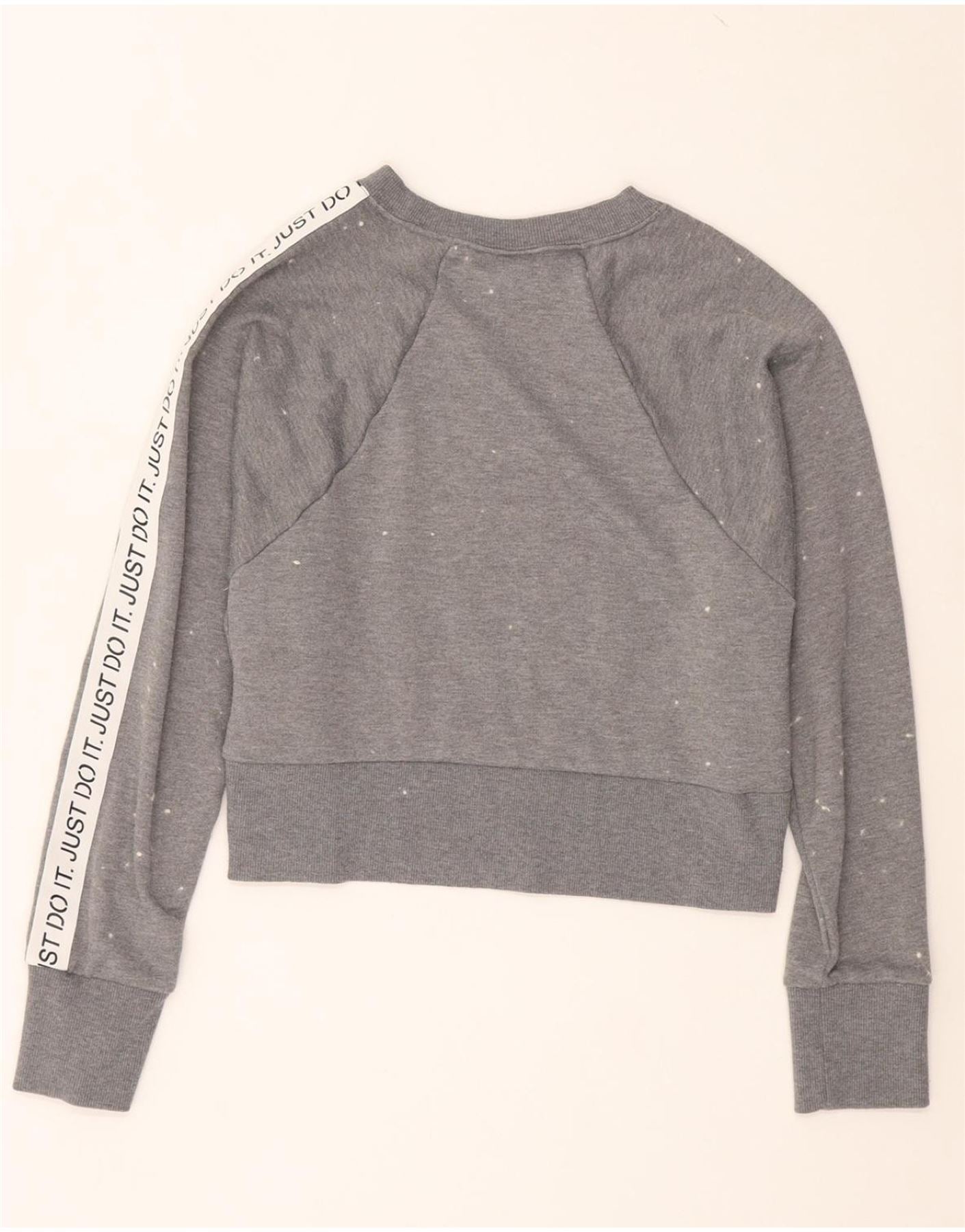 NIKE Womens Graphic Crop Sweatshirt Jumper UK 14 Medium Grey Polyester