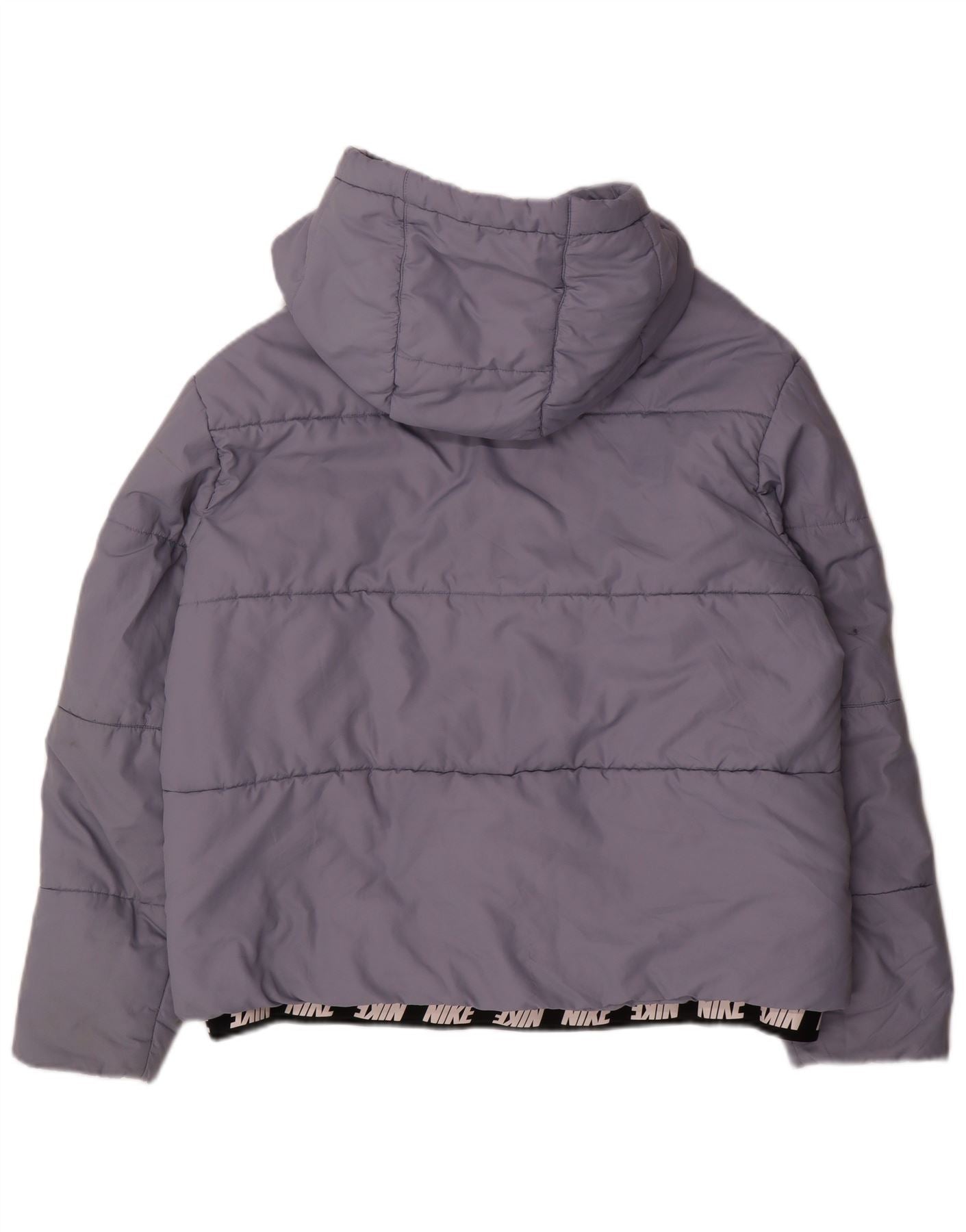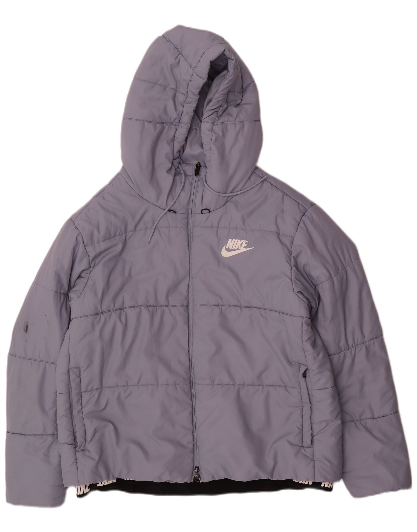 NIKE grafisk polstret hættejakke til kvinder UK 18 XL Blå polyester