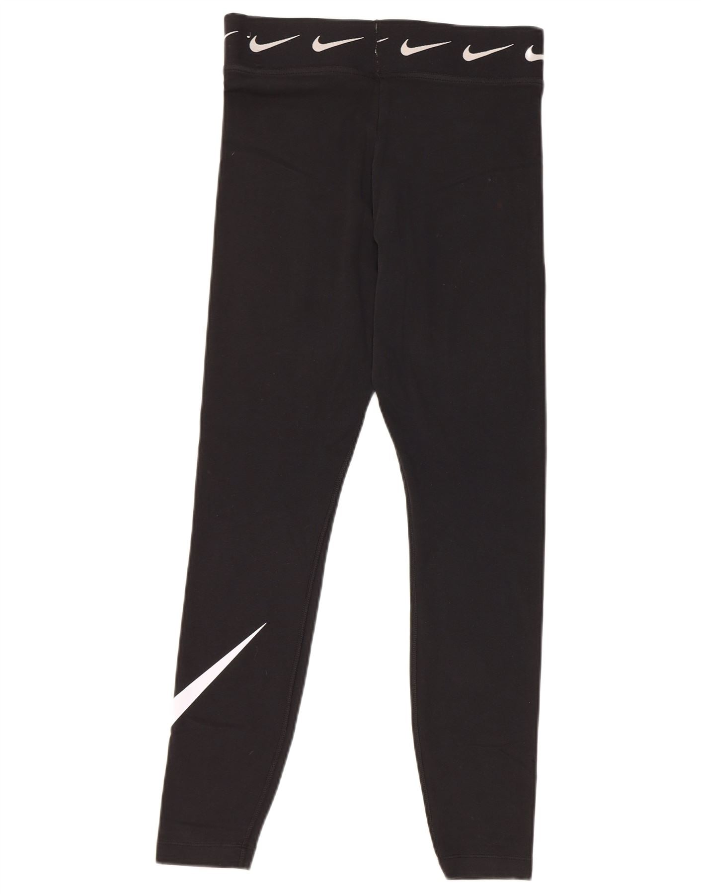 NIKE Womens Graphic Leggings UK 12 Medium Black Cotton