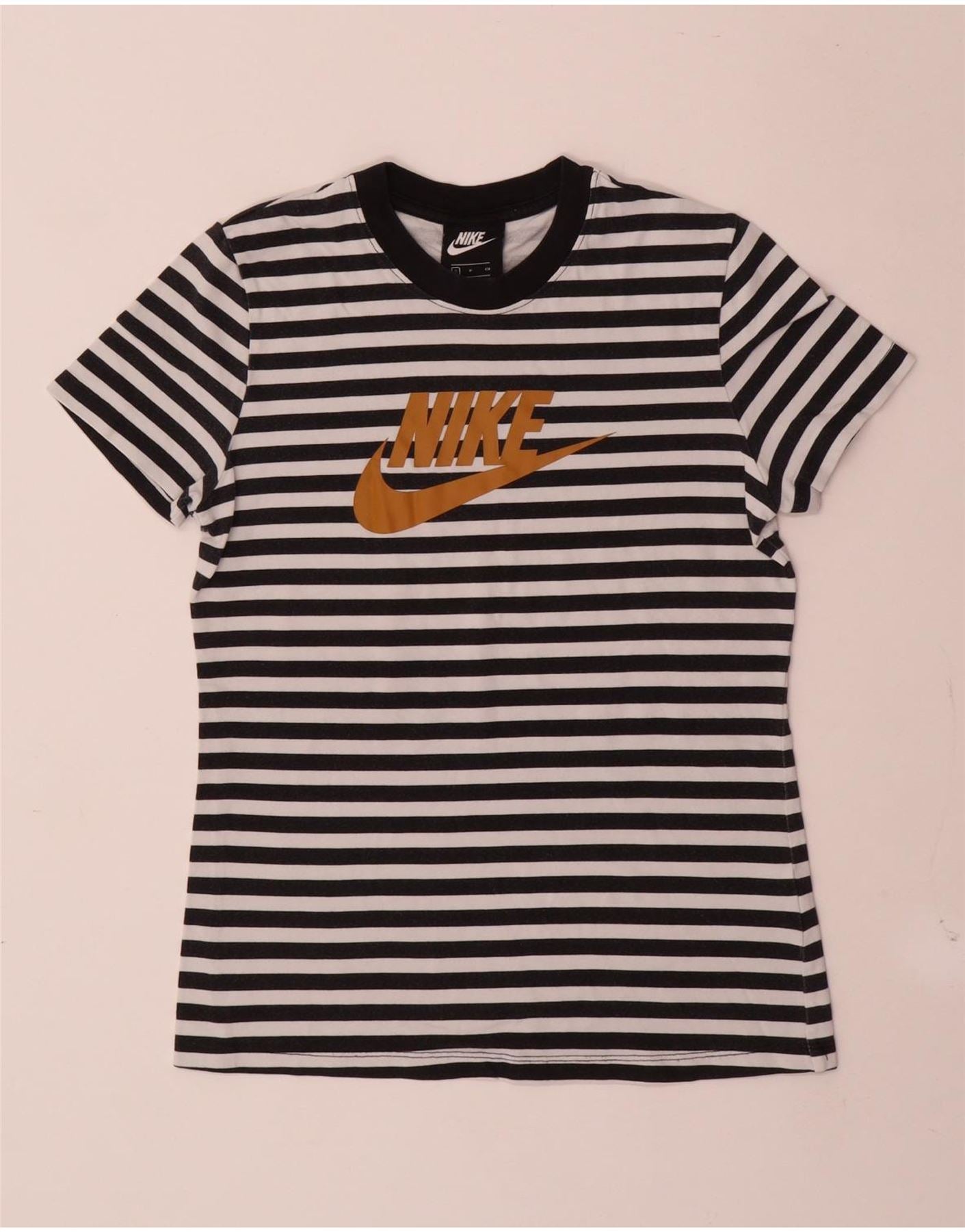 NIKE Grafisk T-shirt top til kvinder UK 10 Lille sort stribet bomuld