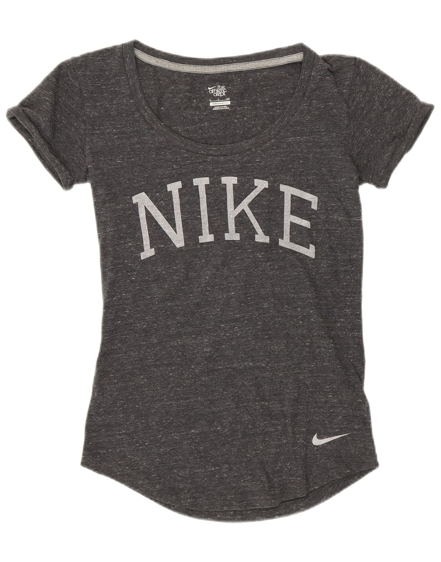 NIKE Grafisk T-shirt top til kvinder DK 10 Små grå flækkede