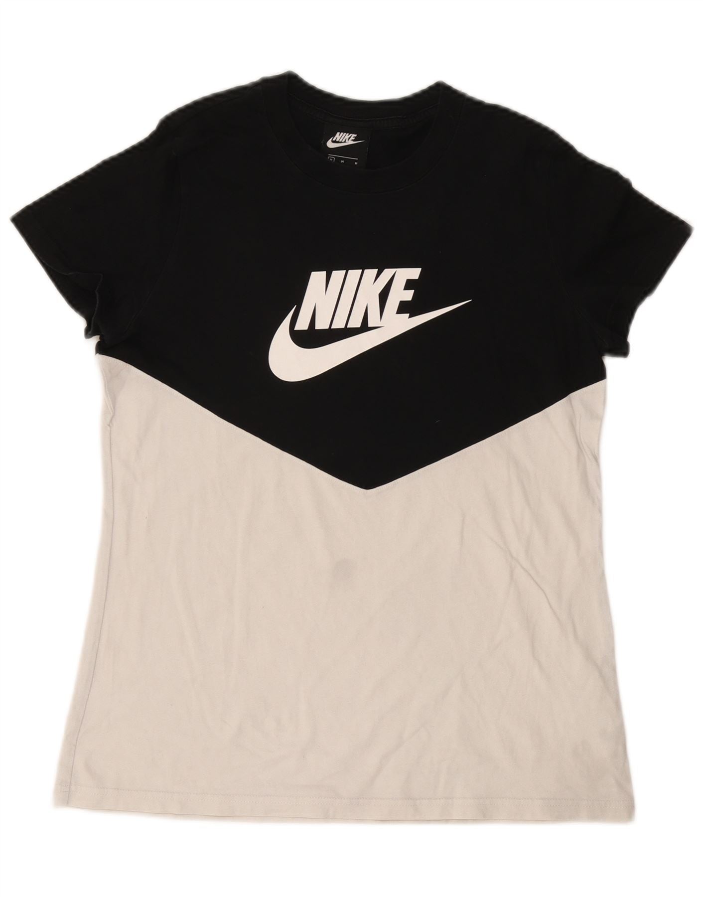 NIKE grafisk t-shirt top til kvinder DK 12 Medium White Colourblock Bomuld