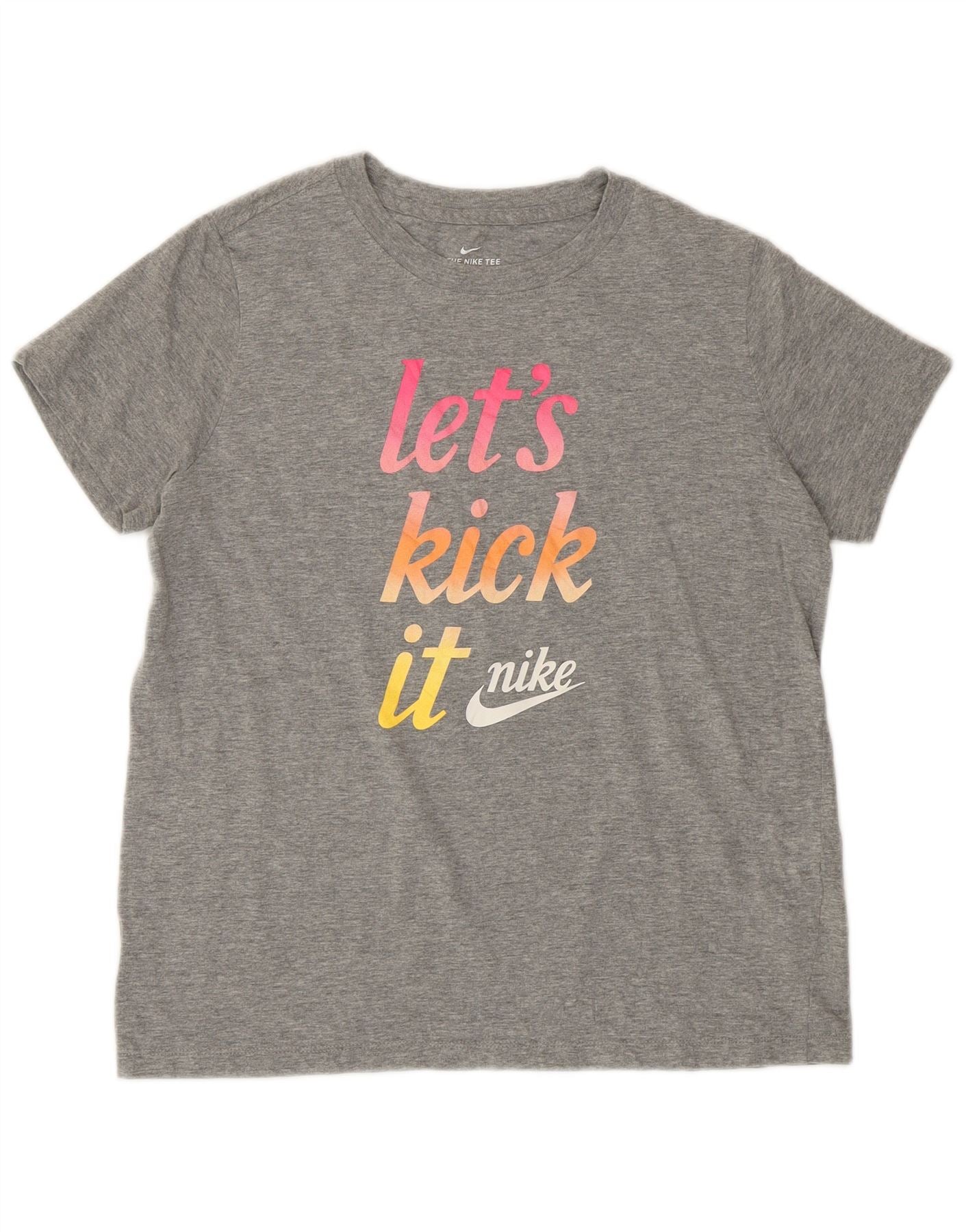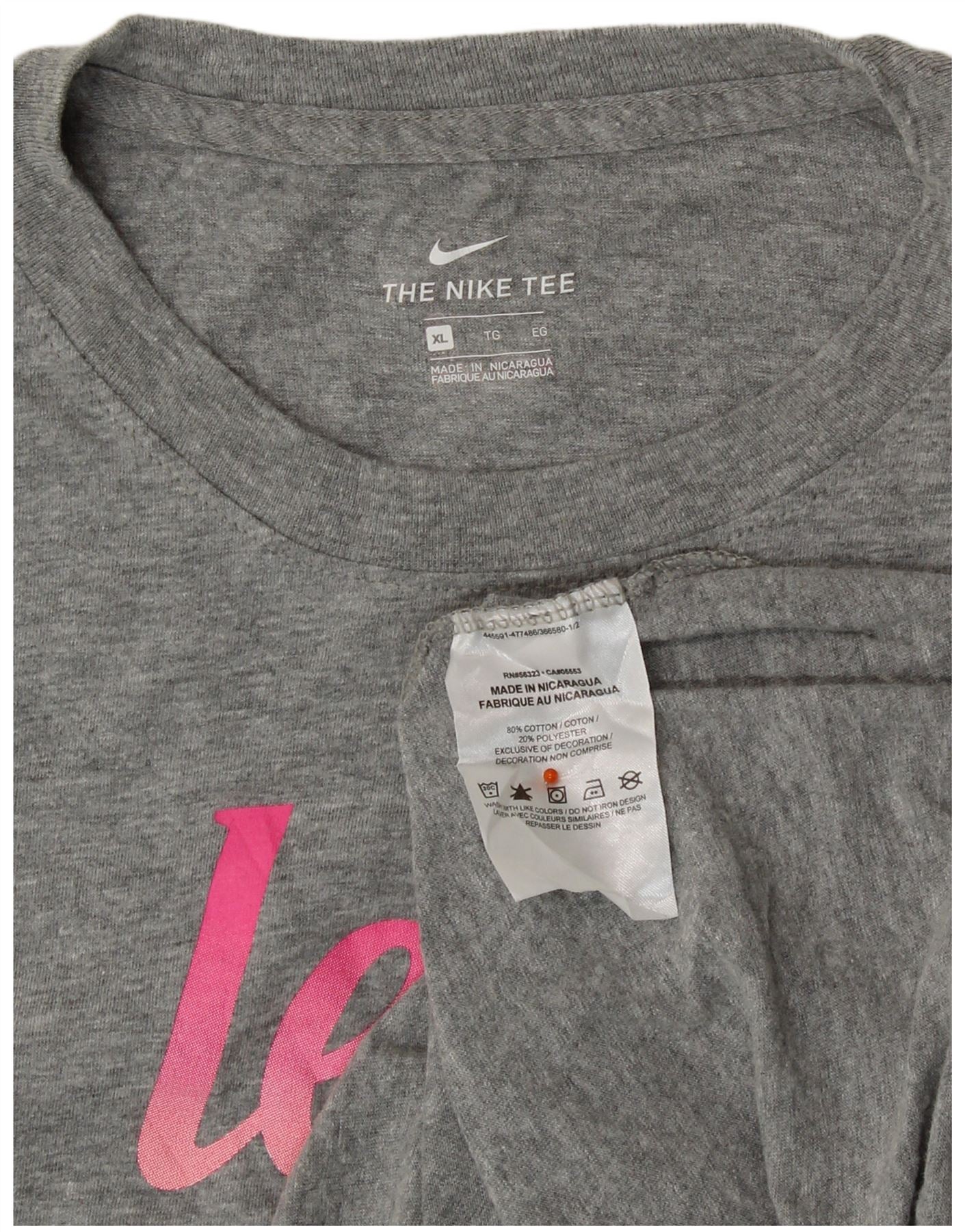 NIKE grafisk T-shirt top til kvinder UK 18 XL Grå bomuld