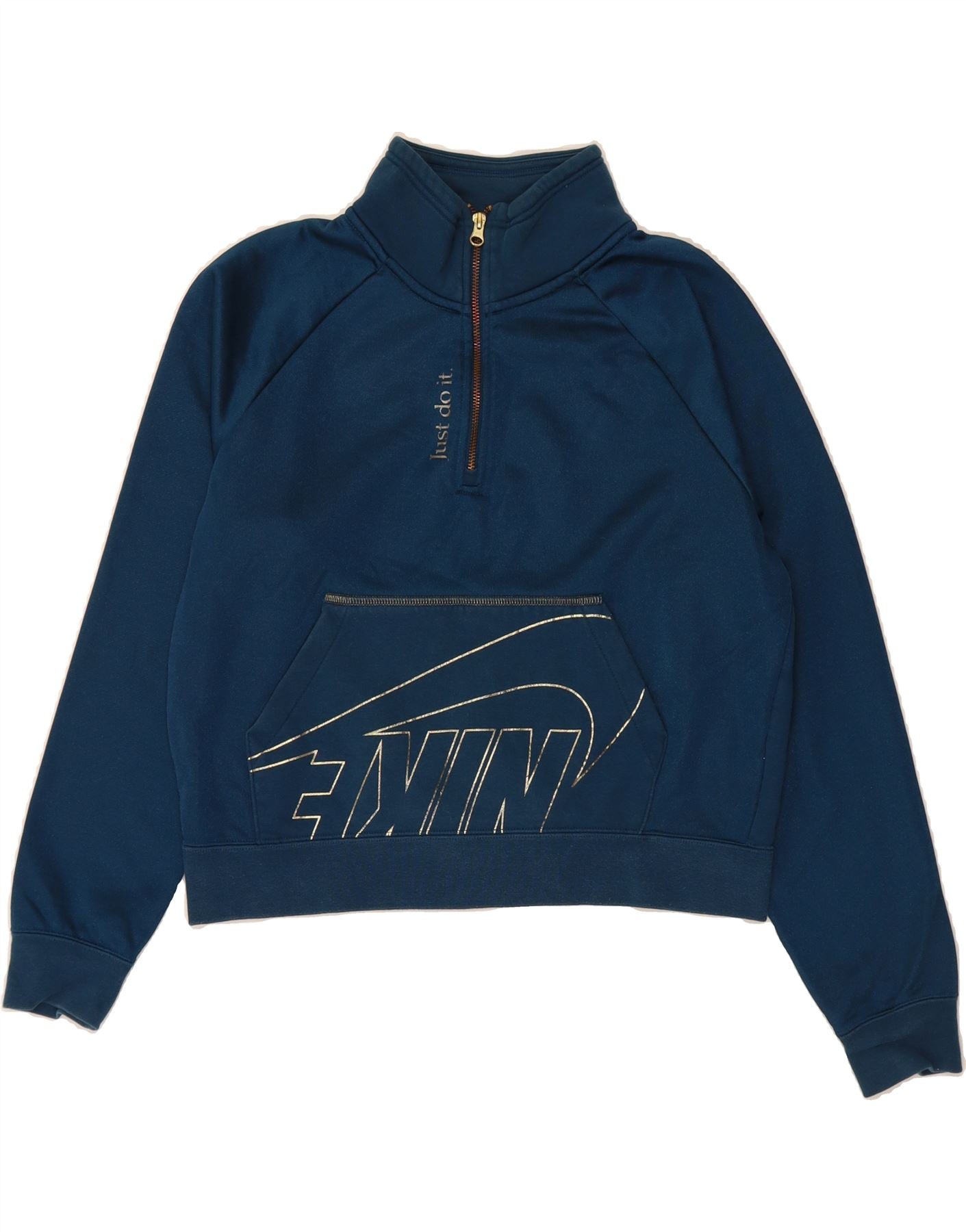 NIKE Womens Oversized Crop Graphic Sweatshirt Jumper UK 10 Small Blue