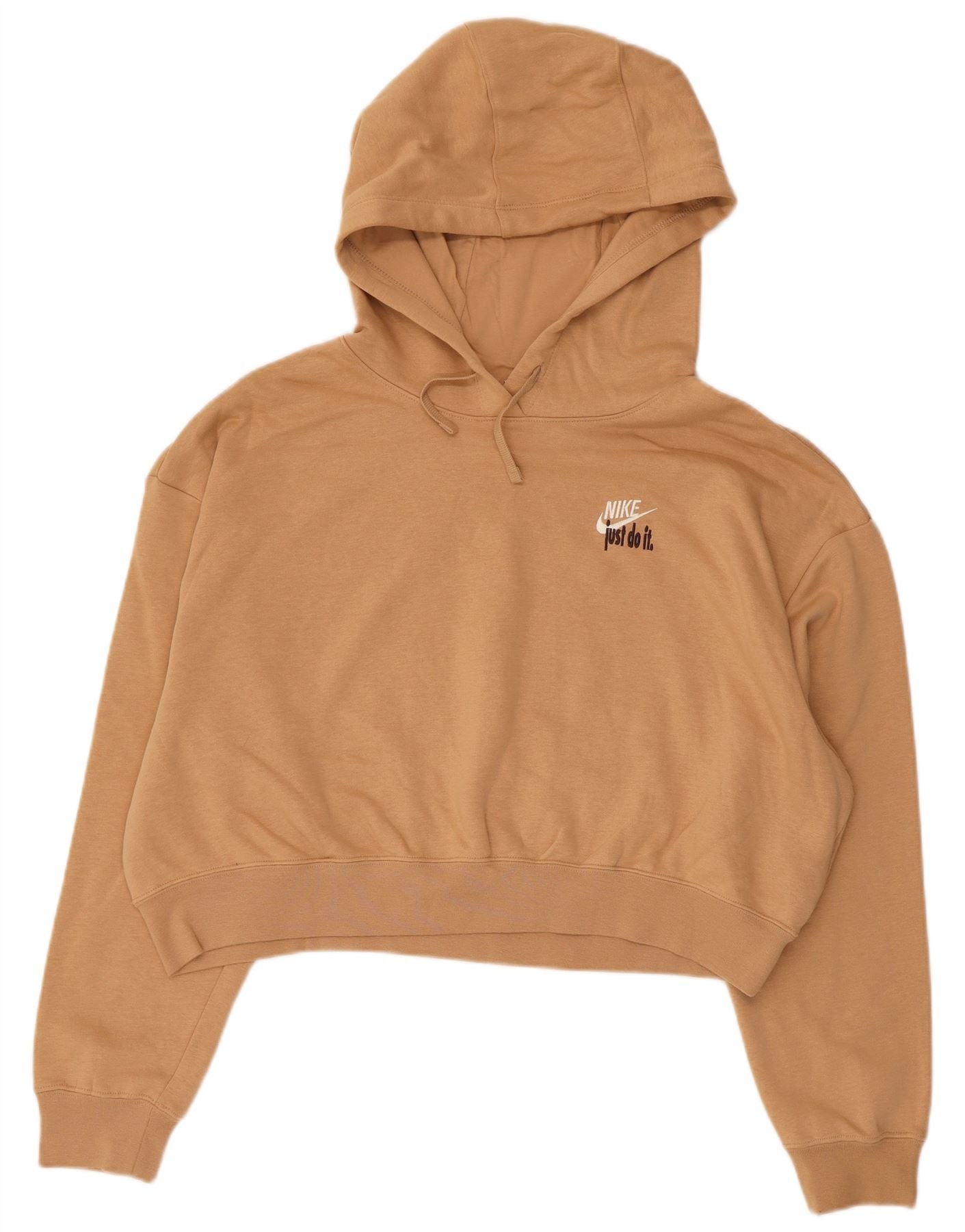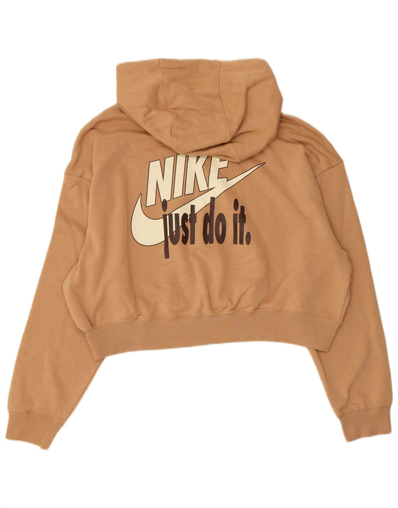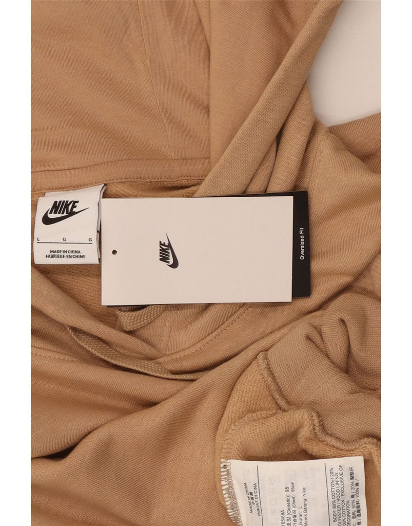 NIKE Womens Oversized Graphic Crop Hoodie Jumper UK 16 Large Beige Cotton