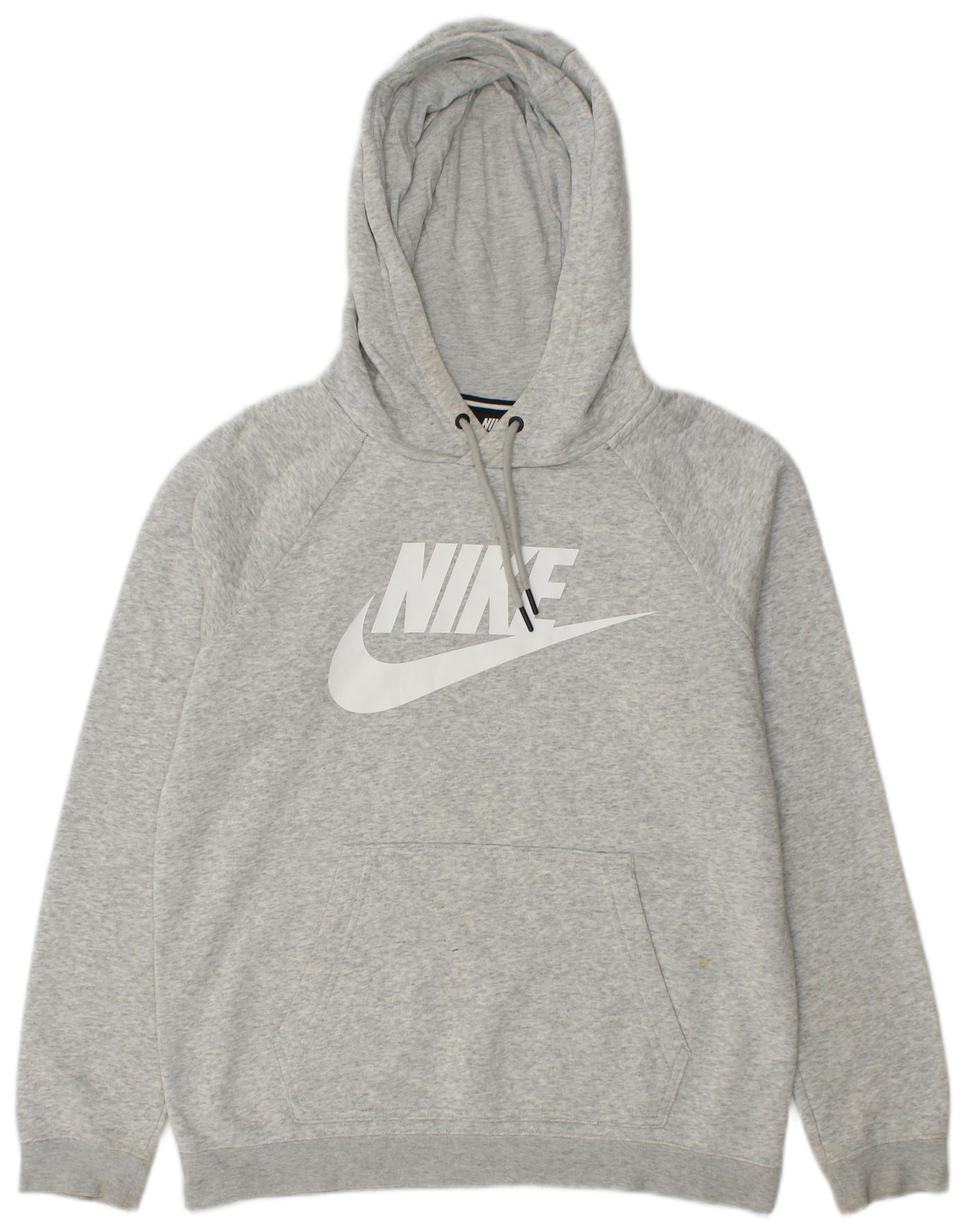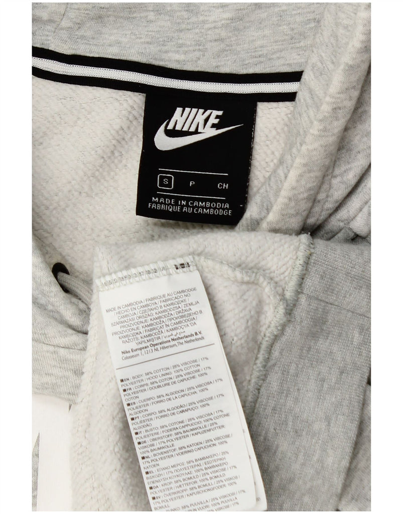 NIKE Womens Oversized Graphic Hoodie Jumper UK 10 Small Grey Flecked