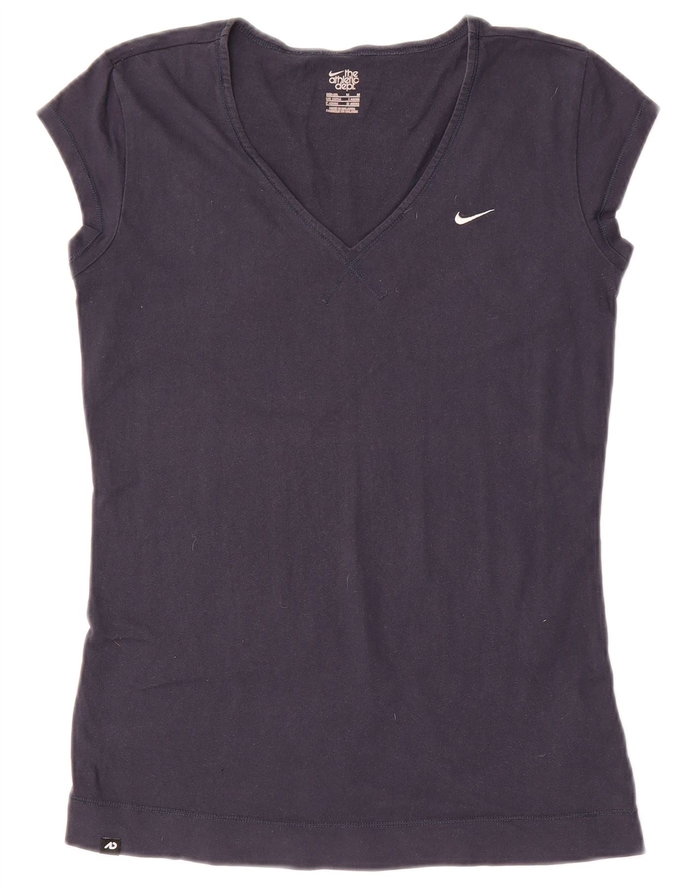 NIKE Womens T-Shirt Top UK 12/14 Medium Navy Blue Polyester