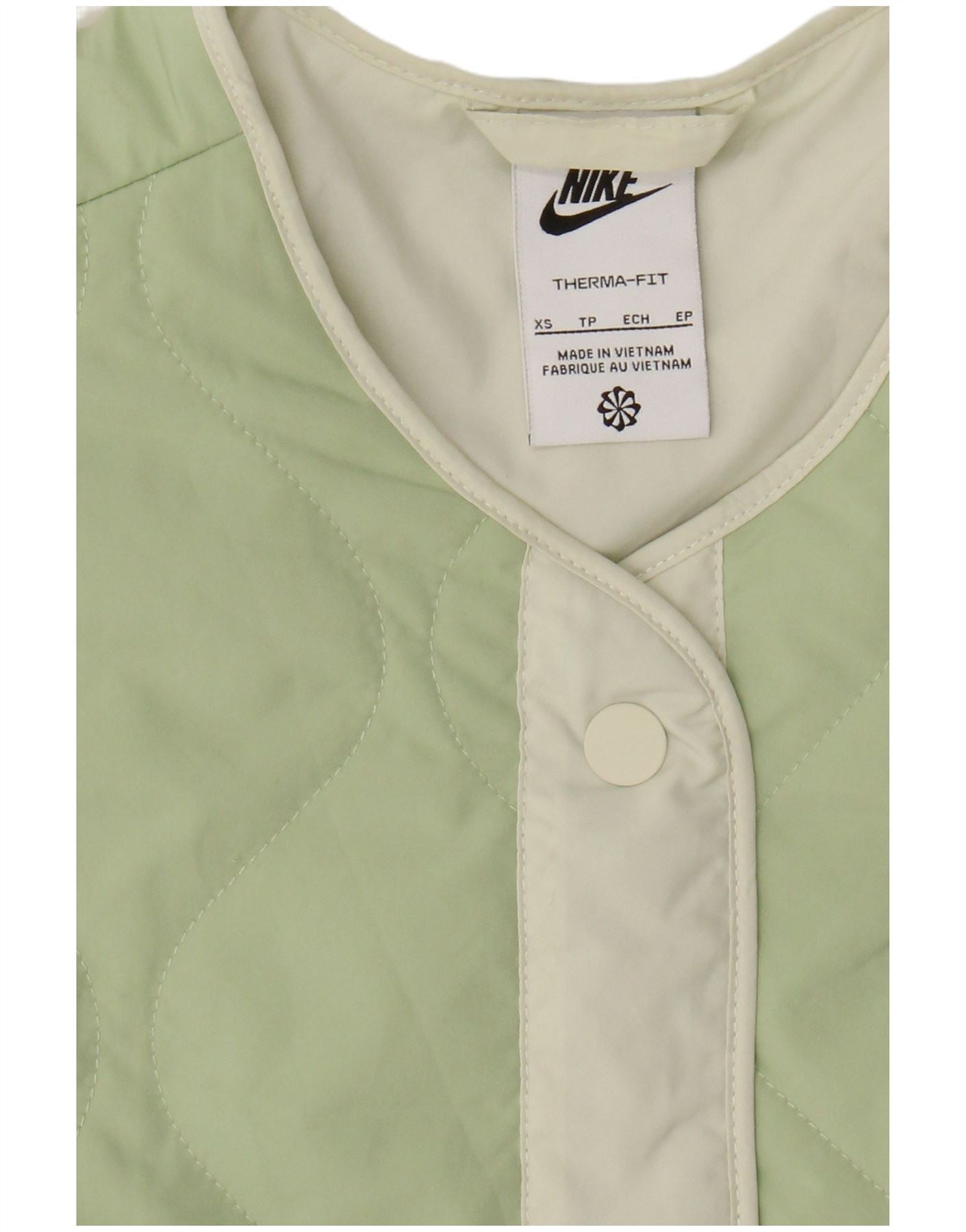 NIKE Womens Therma-Fit Oversized Quilted Jacket UK 6 XS Green Colourblock