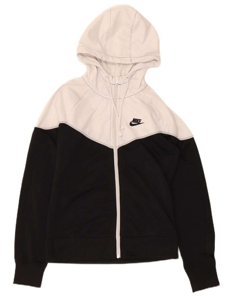 NIKE Womens Zip Hoodie Sweater UK 10 Small White Colourblock Polyester