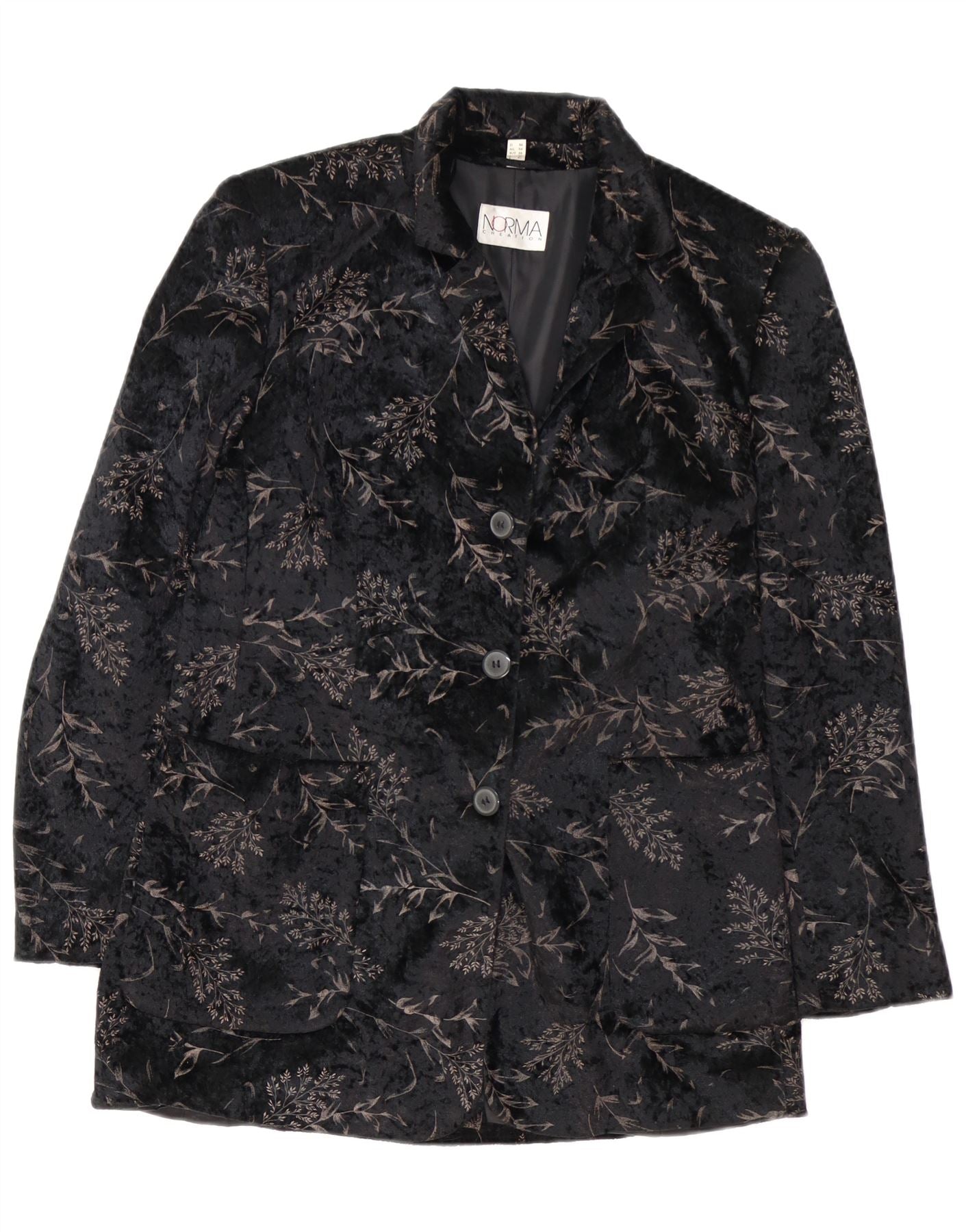 NORMA Dame Longline 3-knaps blazerjakke UK 10 Small Black Floral