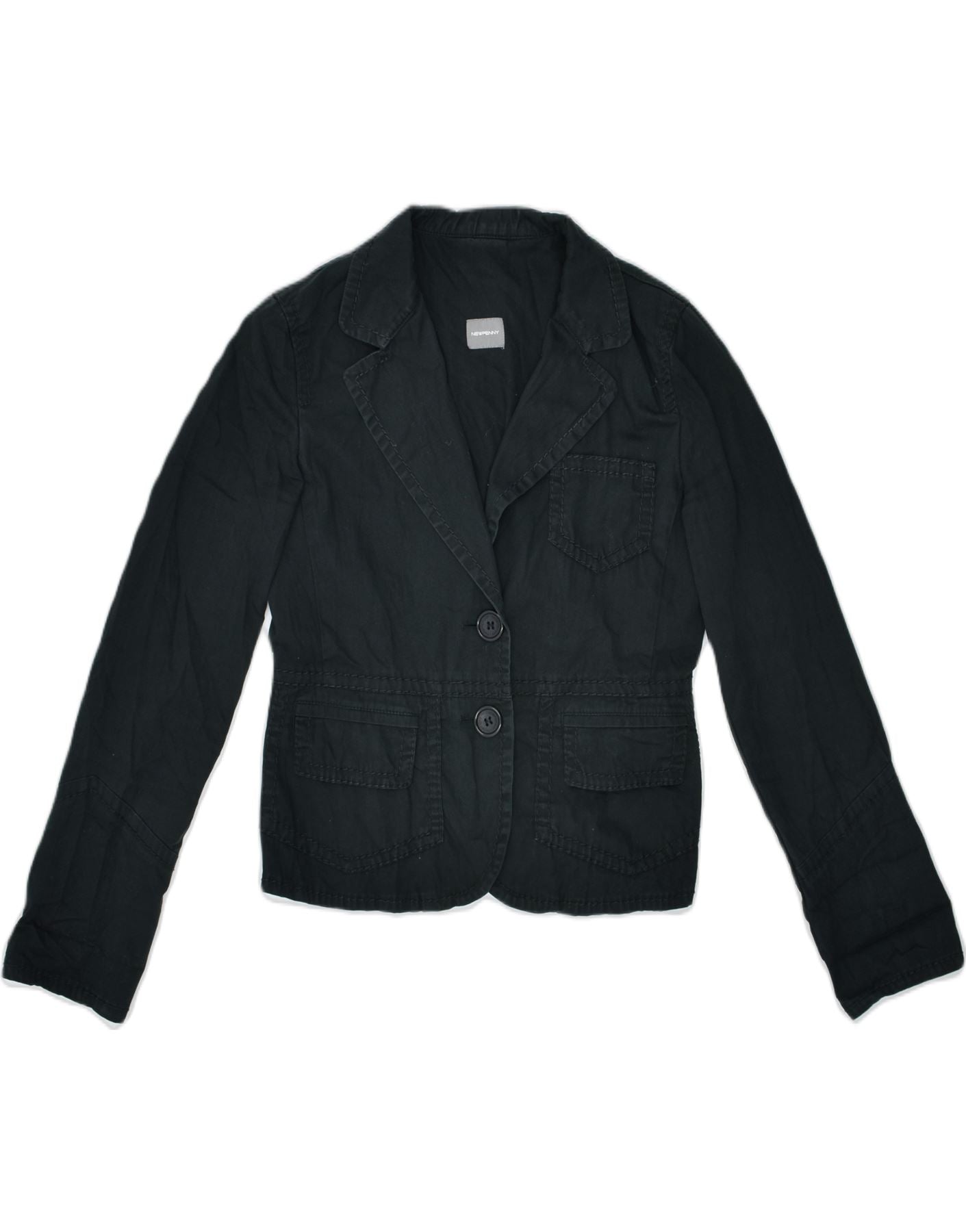 NY PENNY Womens 2 Button Bomber Jacket UK 12 Medium Black Bomuld