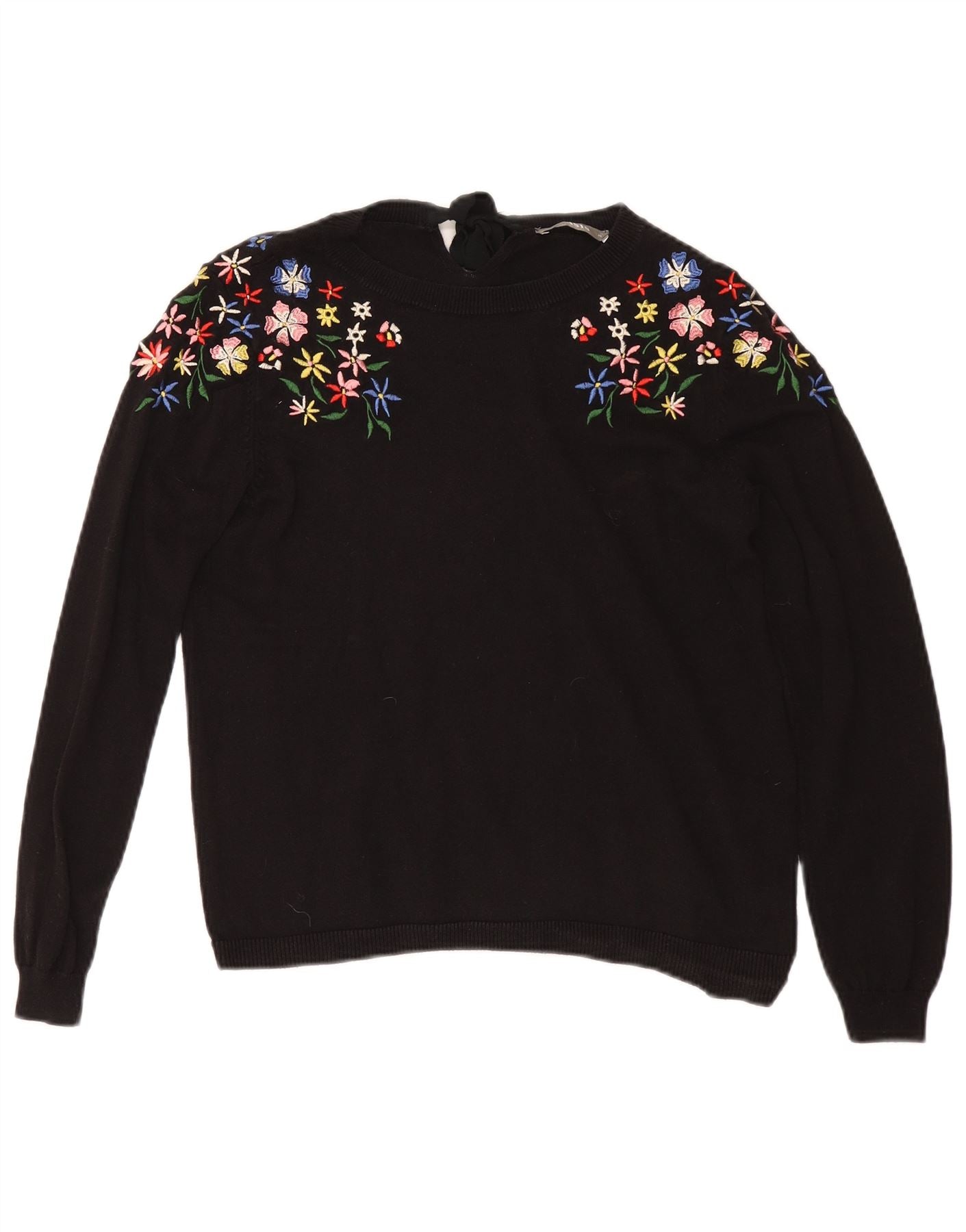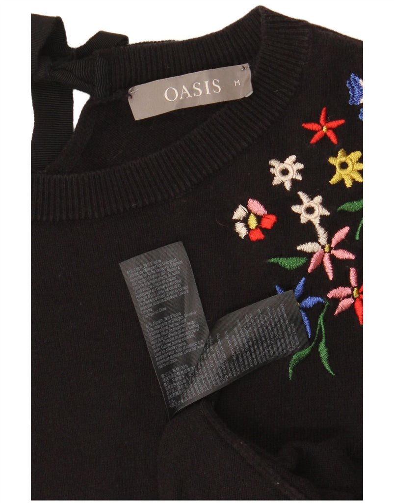 OASIS Womens Crop Boat Neck Jumper Sweater UK 12 Medium Black Floral