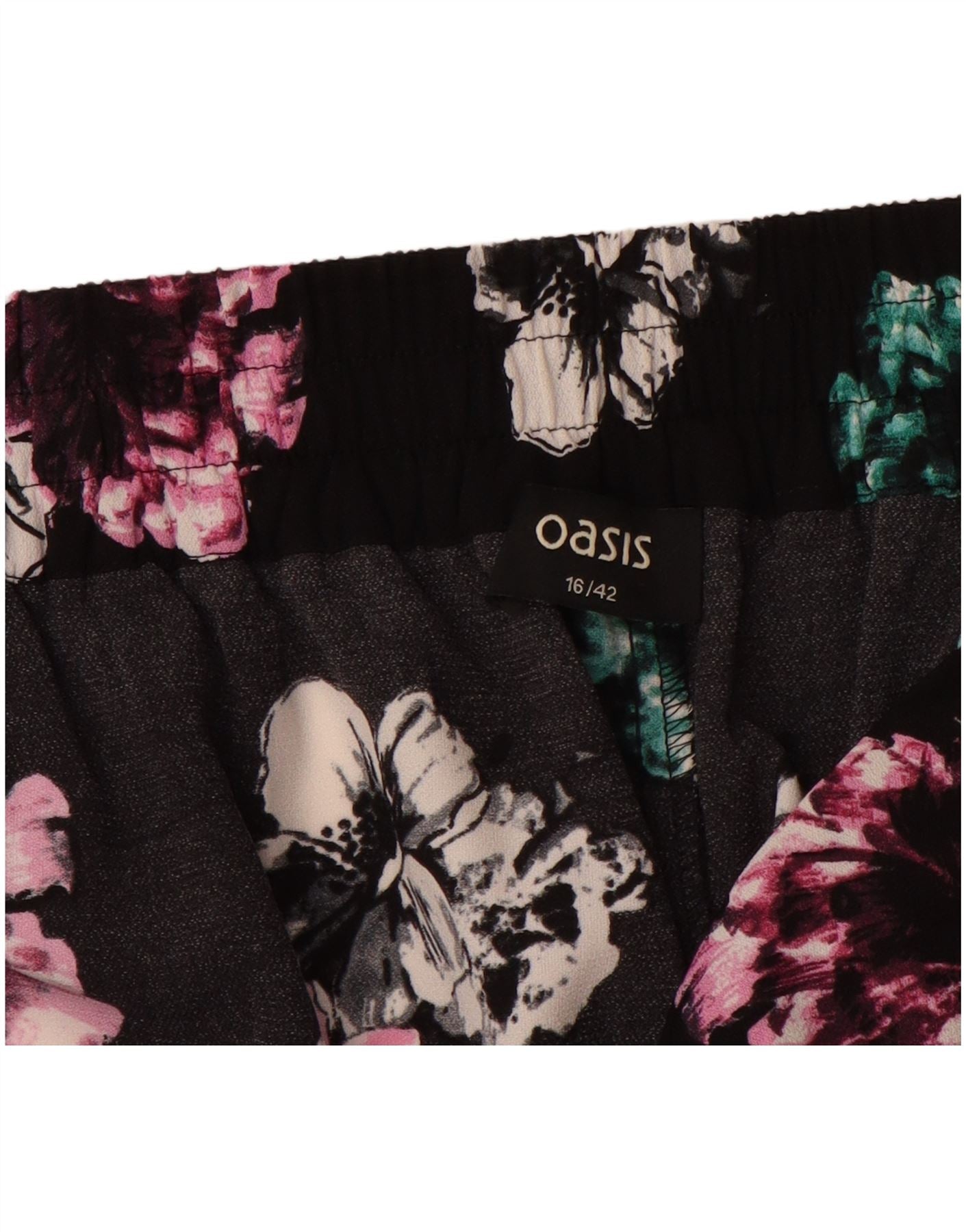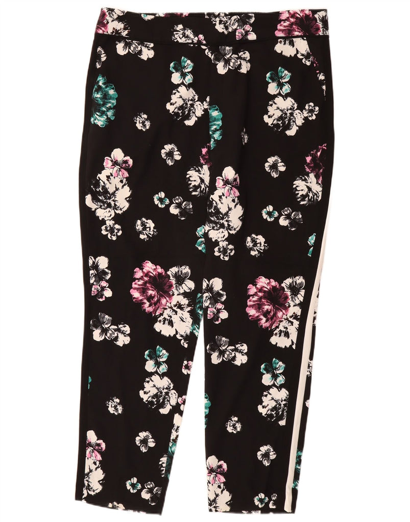 OASIS Womens Straight Chino Trousers UK 16 Large W34 L28 Black Floral