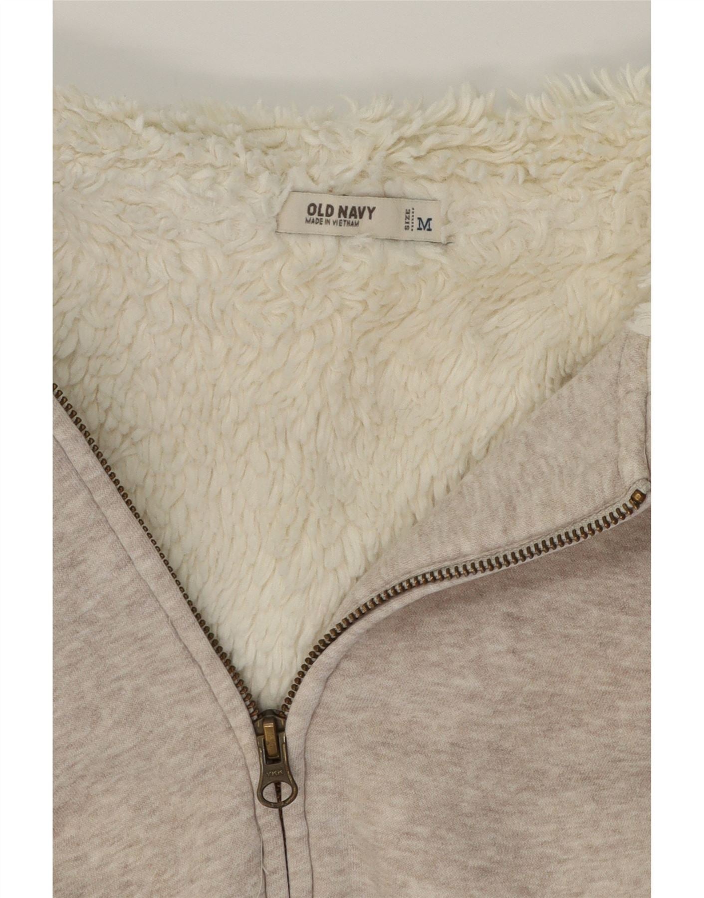 OLD NAVY Womens Zip Hoodie Sweater UK 14 Medium Grey Flecked Cotton