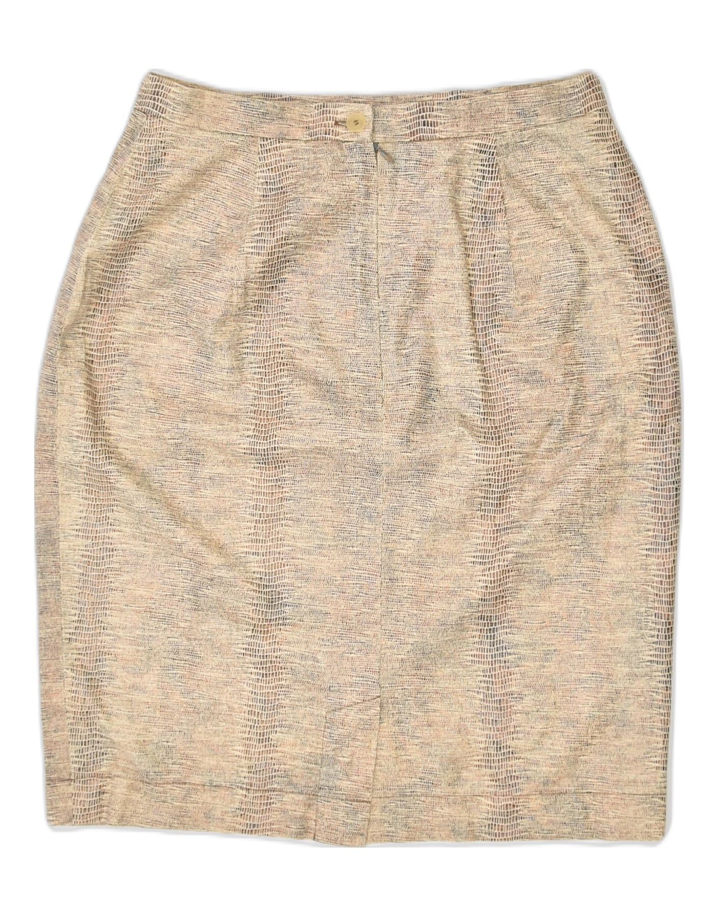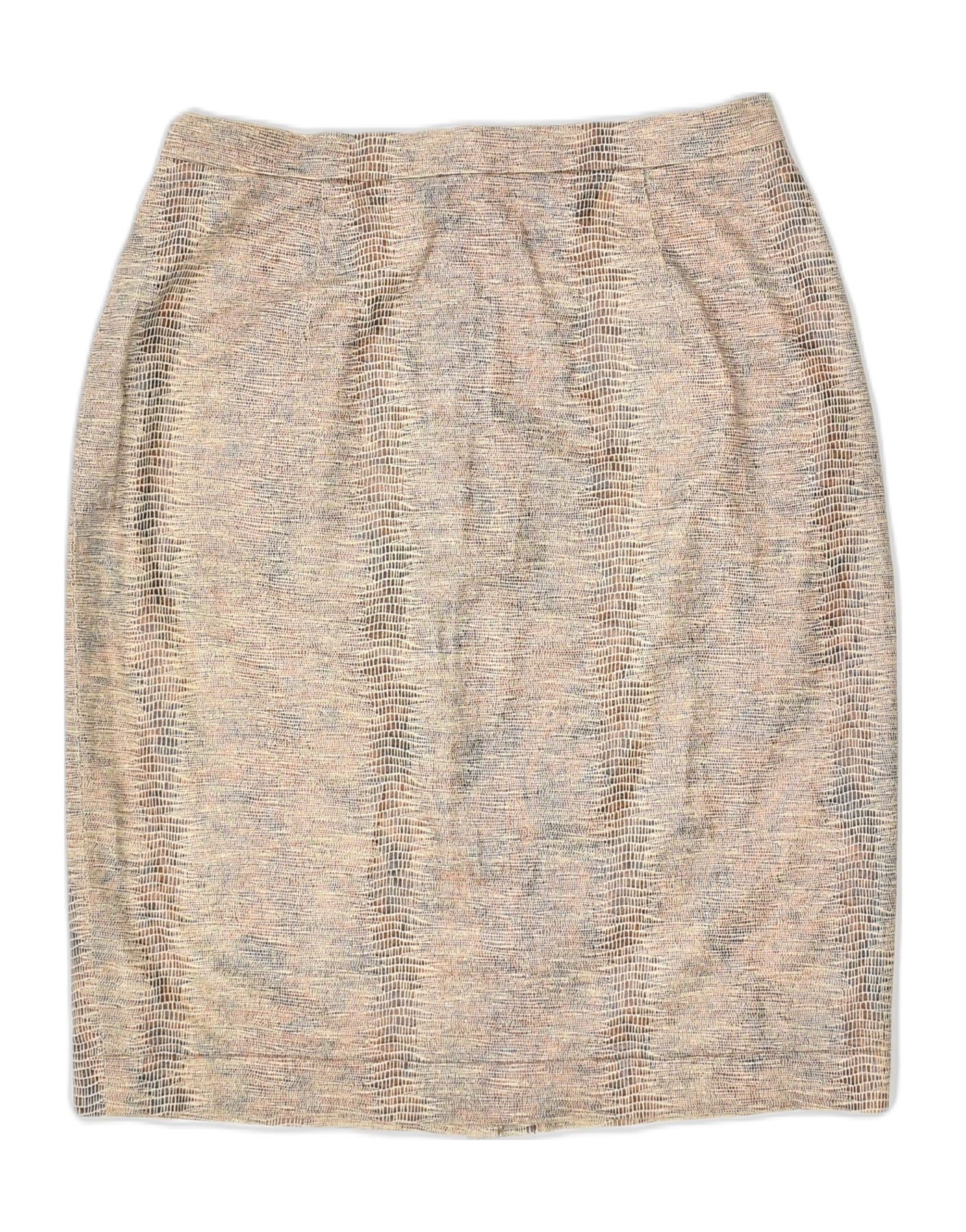 OLSEN Lige nederdel til kvinder UK 10 Small W26 Beige Animal Print Bomuld