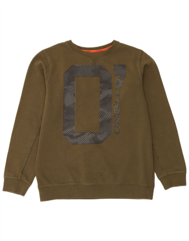 O'NEILL Mens Slim Fit Graphic Sweatshirt Jumper Large Khaki Cotton