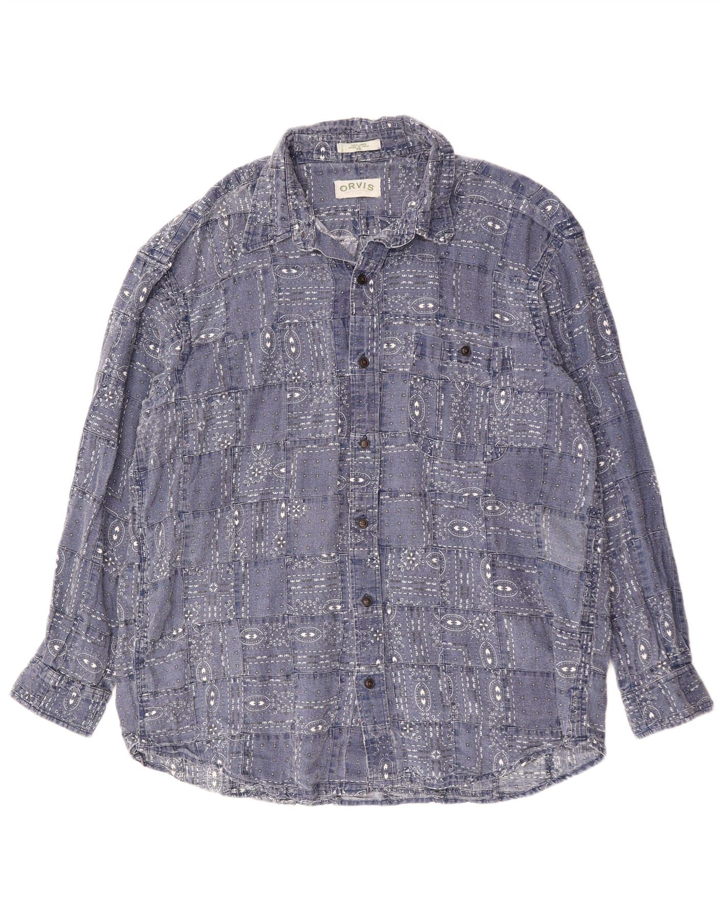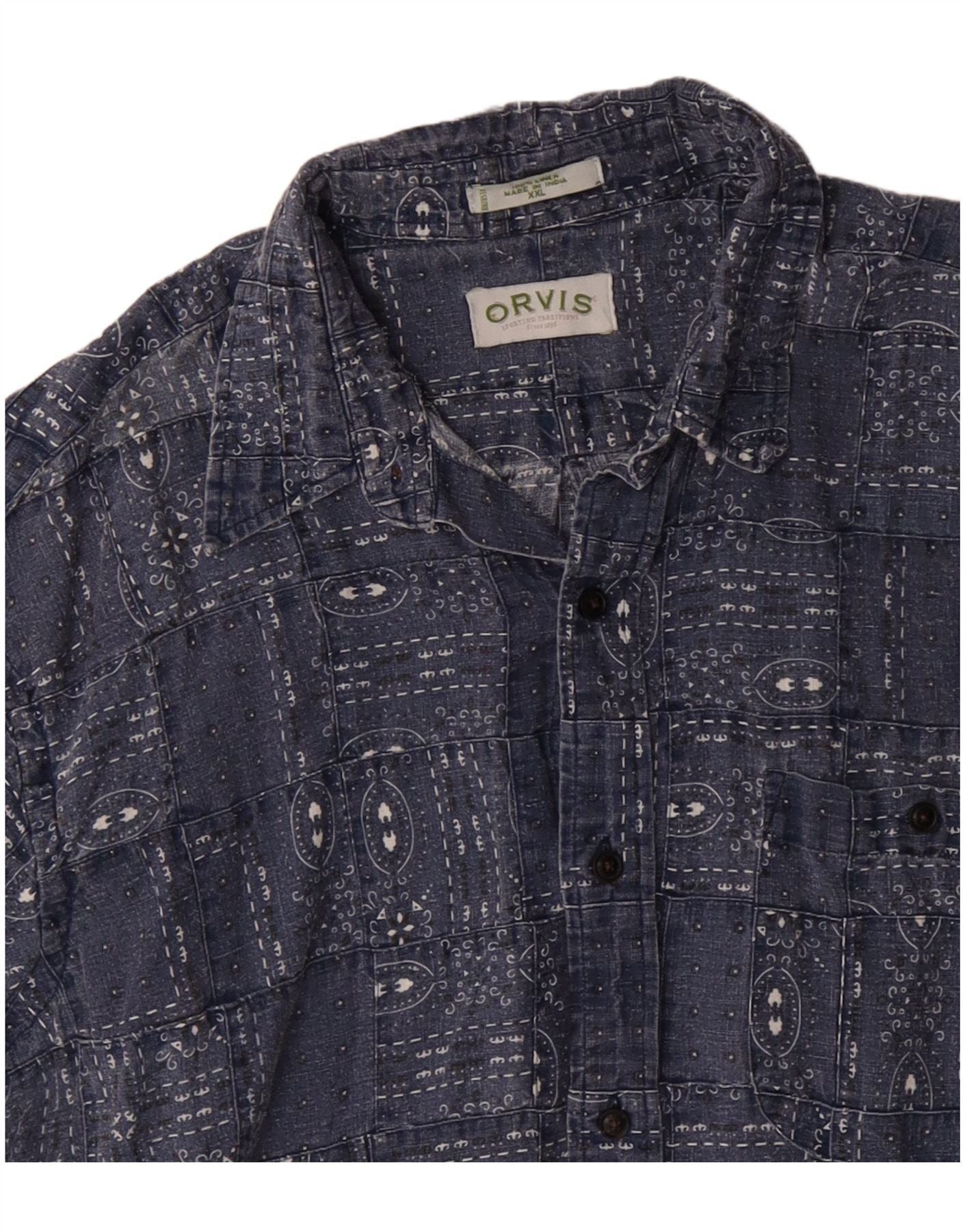 ORVIS herreskjorte 2XL marineblå geometrisk linned
