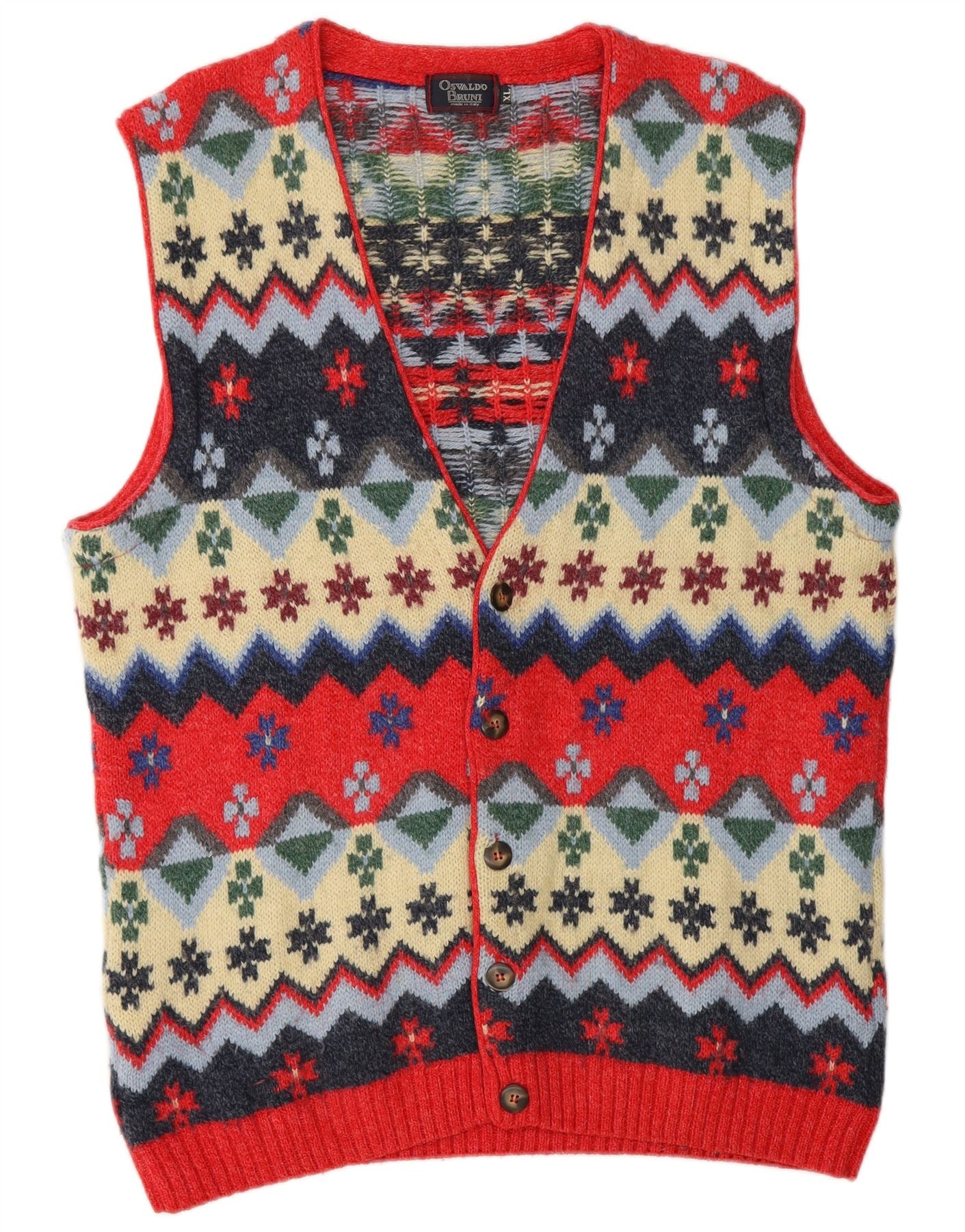 OSVALDO BRUNI Herre ærmeløs cardigan sweater XL Flerfarvet Fair Isle