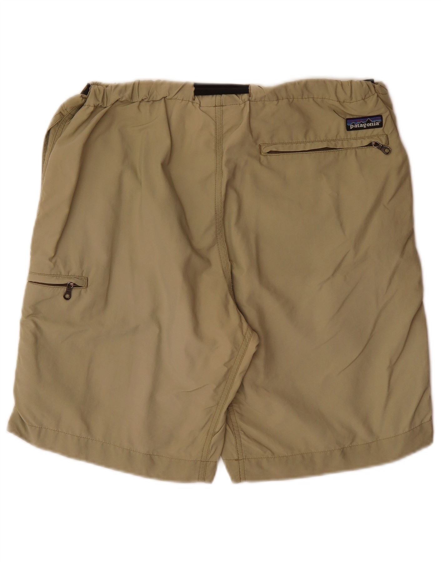 - AI Description: This Patagonia mens Cargo Shorts are crafted from lightweight, woven 100 percent nylon. They feature a relaxed fit with a comfortable pull on elastic waist. Multiple pockets offer practical storage. A subtle logo detail completes the design. The khaki colour provides versatile styling for any casual outing.