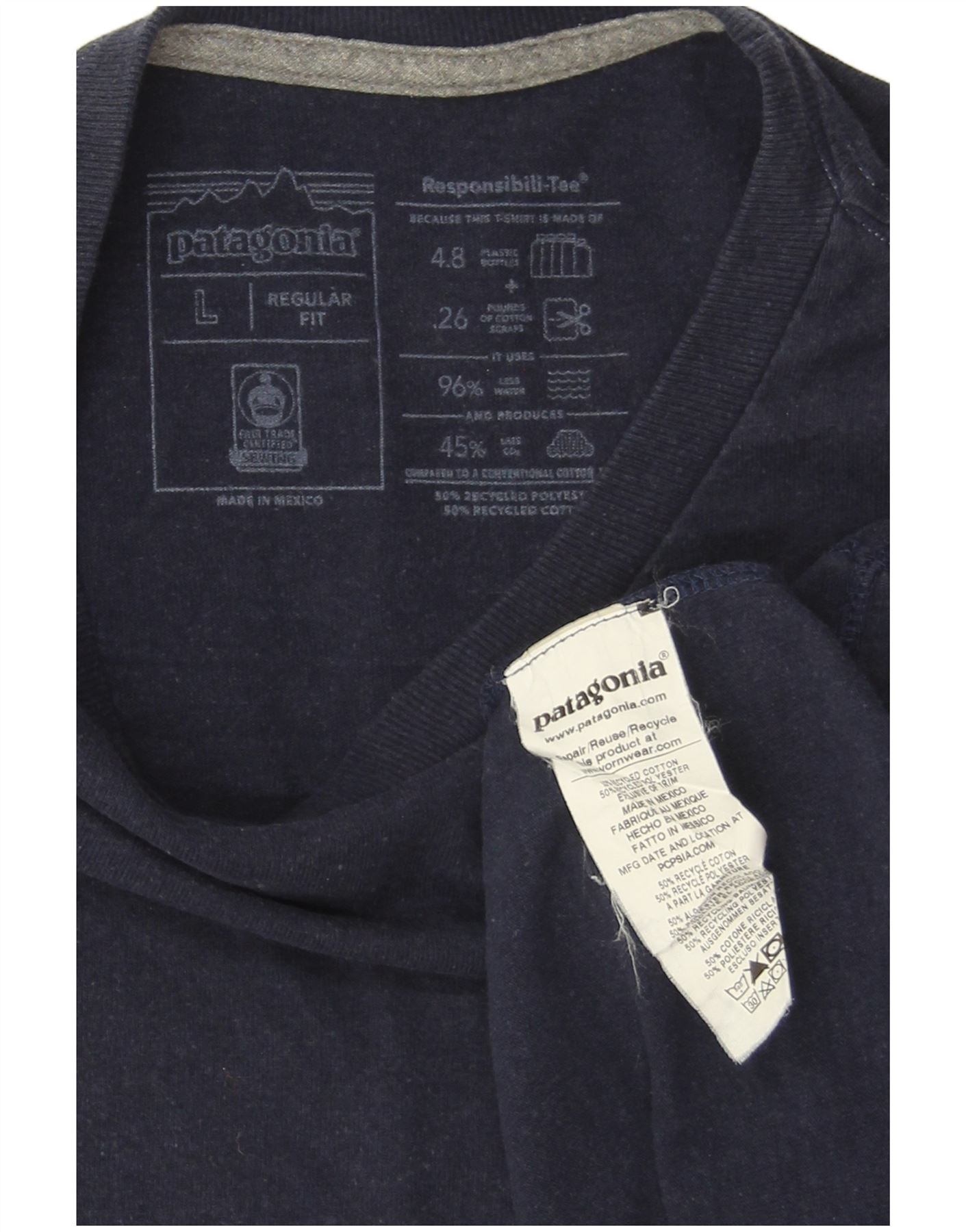 - AI beskrivelse: Denne Patagonia herre Responsibili-Tee langærmet grafisk T-shirt er lavet af et behageligt marineblåt blandet stof. Den består af 50 % genanvendt bomuld og 50 % genanvendt polyester, hvilket giver en blød, åndbar fornemmelse. Den runde hals og lange ærmer giver en klassisk silhuet. Et lille Patagonia logo pryder fronten, med et større grafisk print på bagsiden. Dens regelmæssige pasform sikrer letvægtskomfort til hverdagsbrug.
