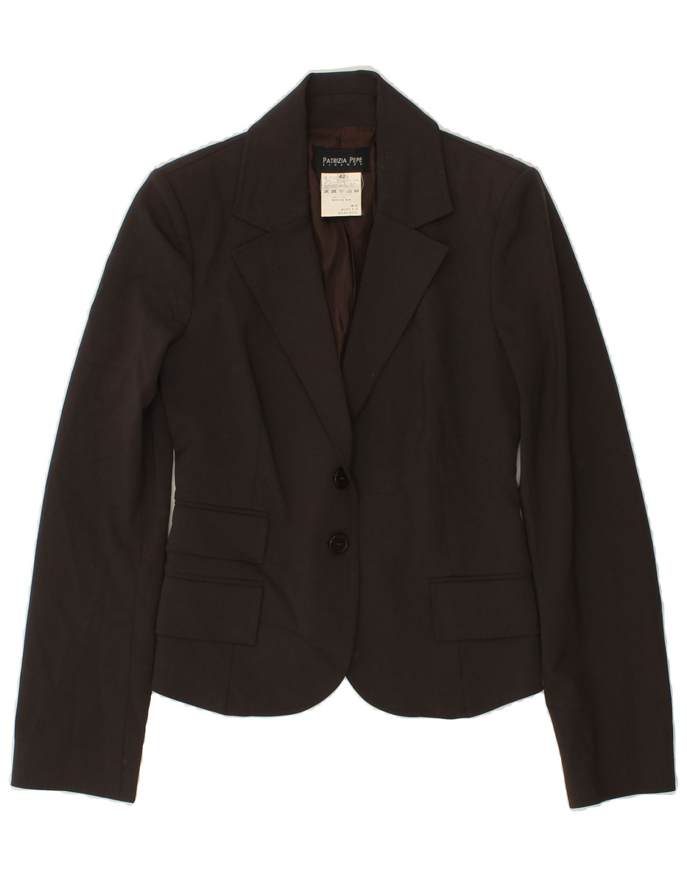 PATRIZIA PEPE Womens Crop 2 Button Blazer Jacket IT 42 Medium Brown Wool