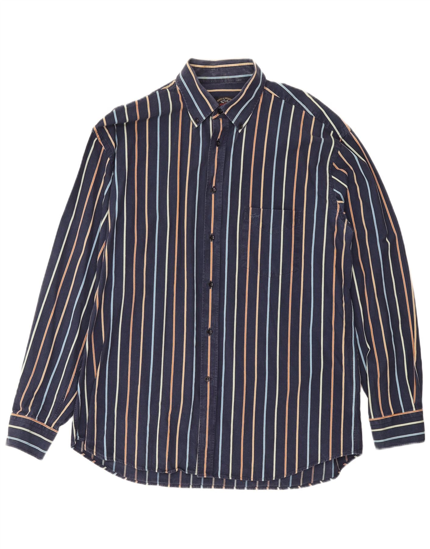 Paul & Shark Herre Yachting Shirt Størrelse 43 Stor Marineblå Stribet Bomuld