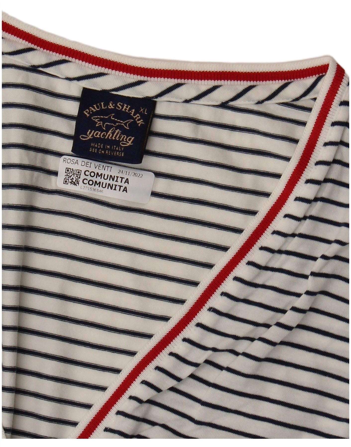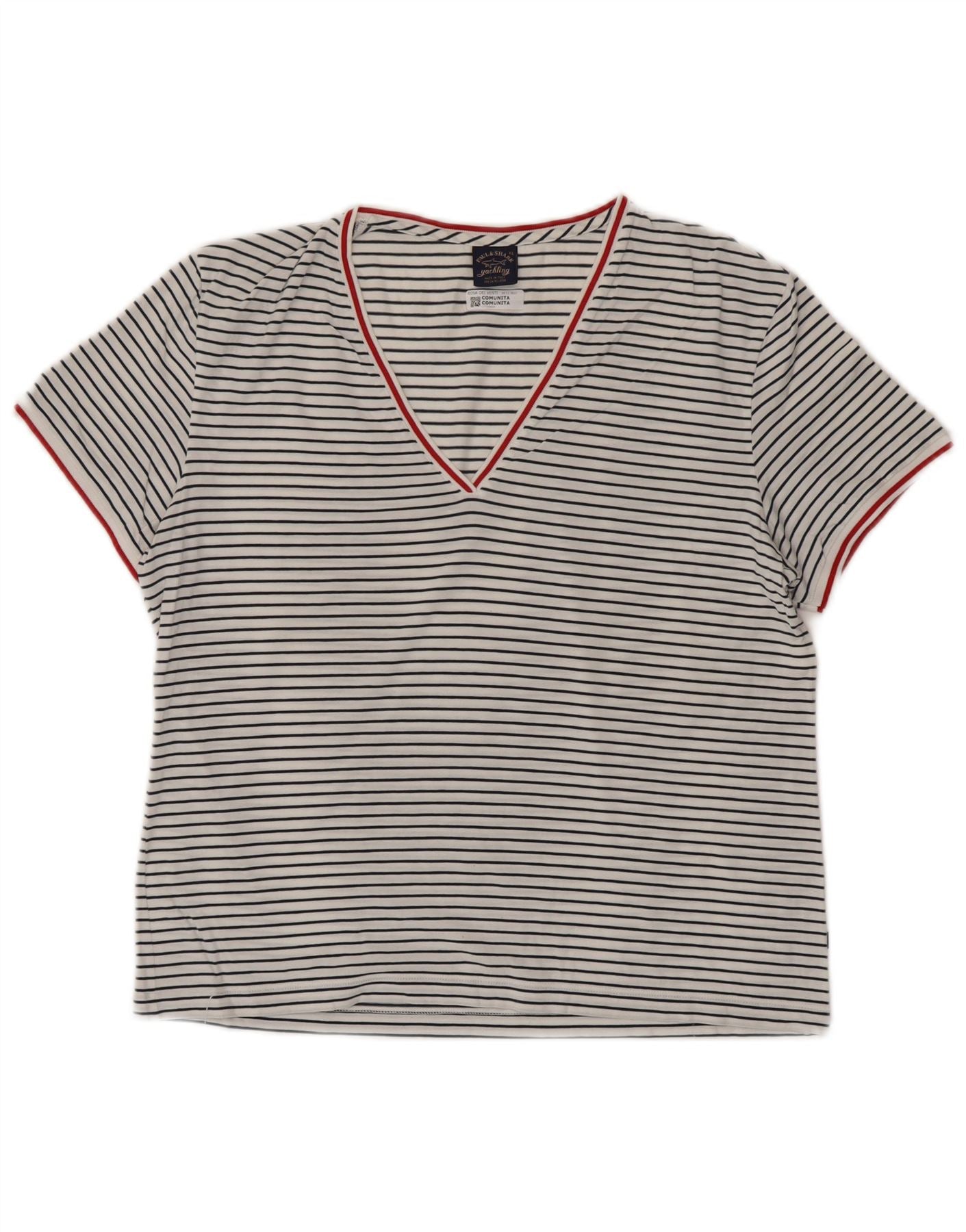 PAUL & SHARK T-shirt top til kvinder UK 18 XL Hvidstribet bomuld