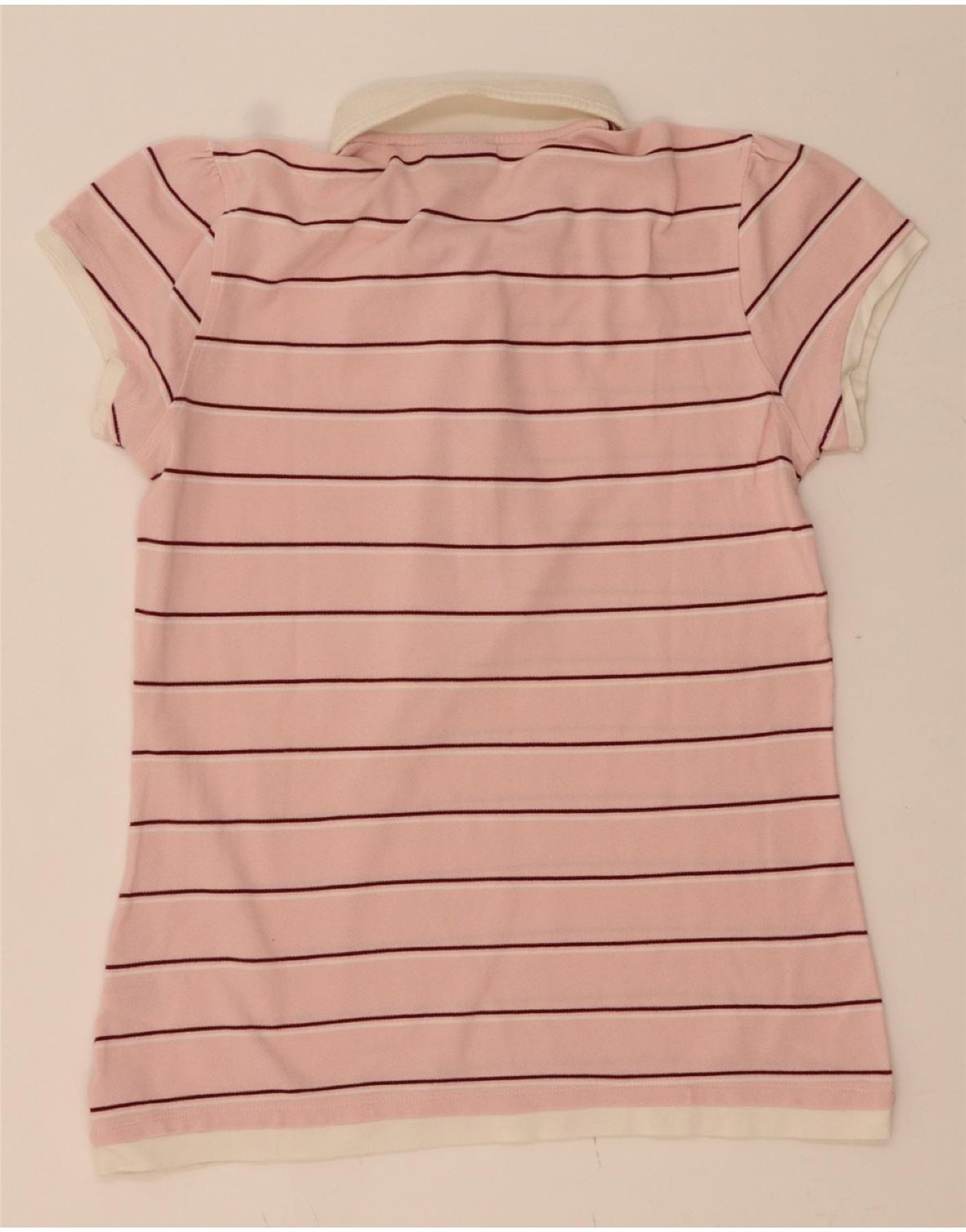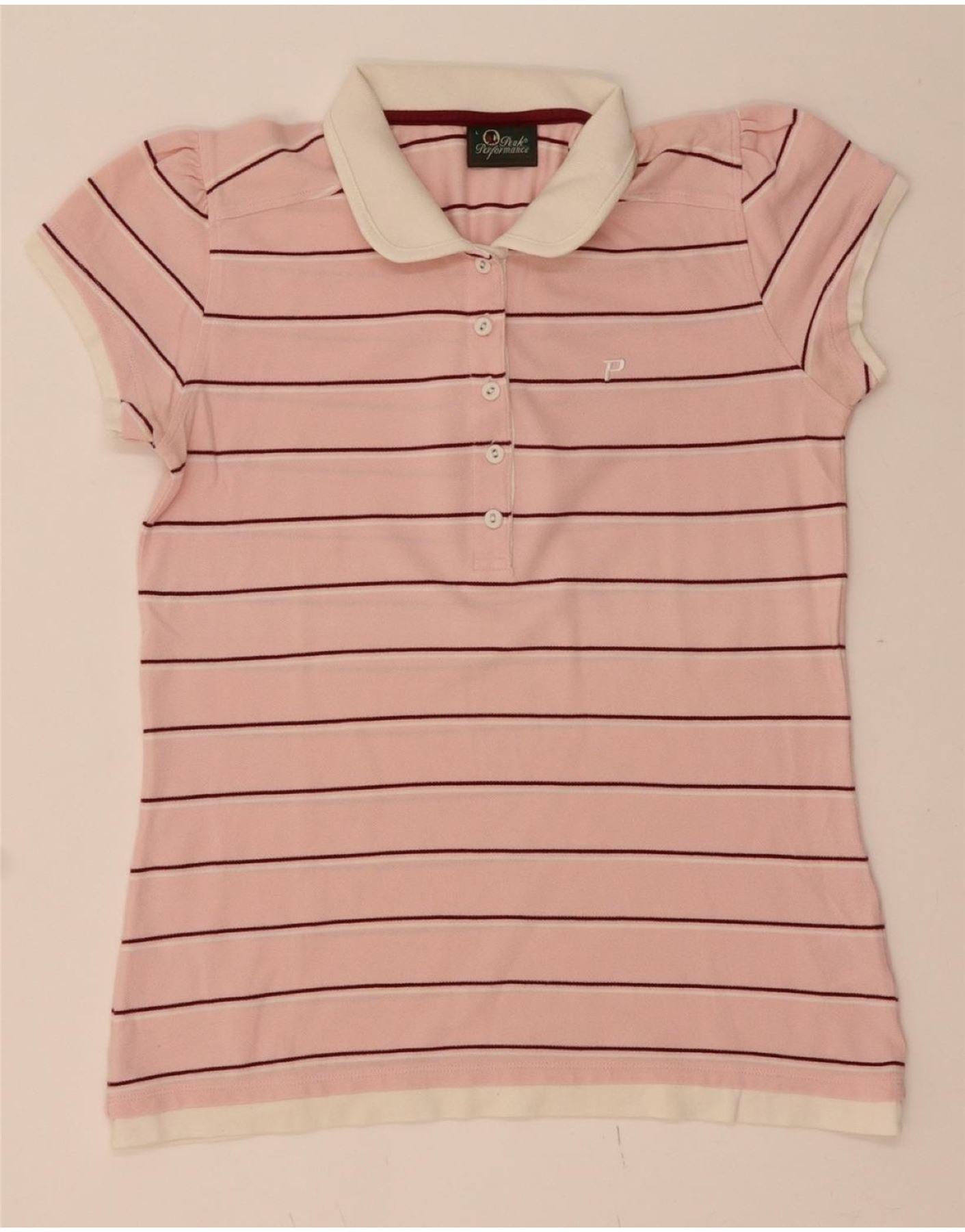 PEAK PERFORMANCE Womens Polo Shirt UK 14 Large Pink Striped Cotton
