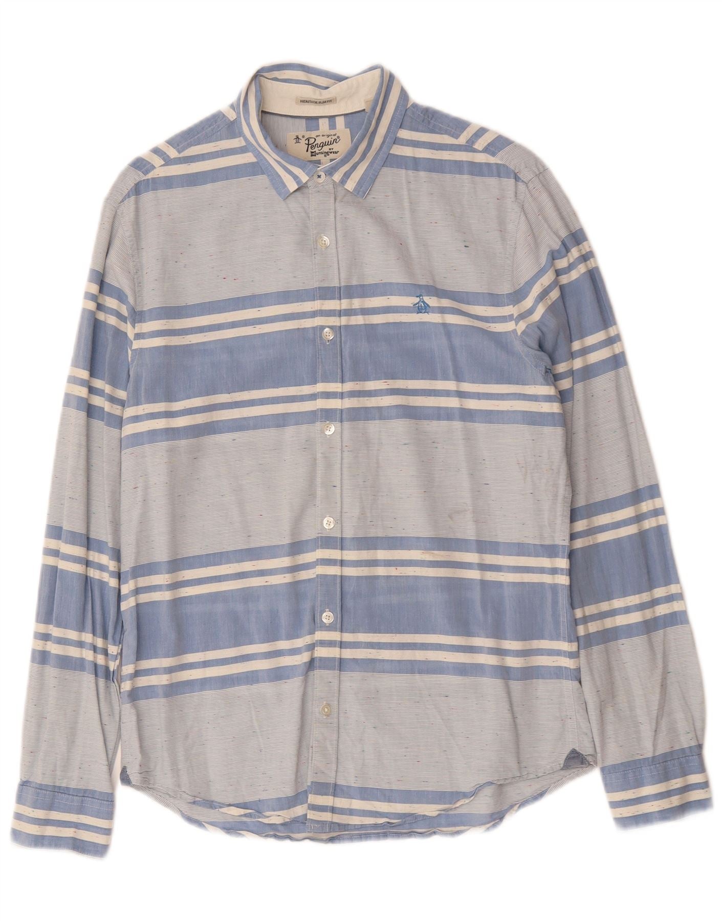PENGUIN Heritage Slim Fit skjorte mellemblå stribet bomuld