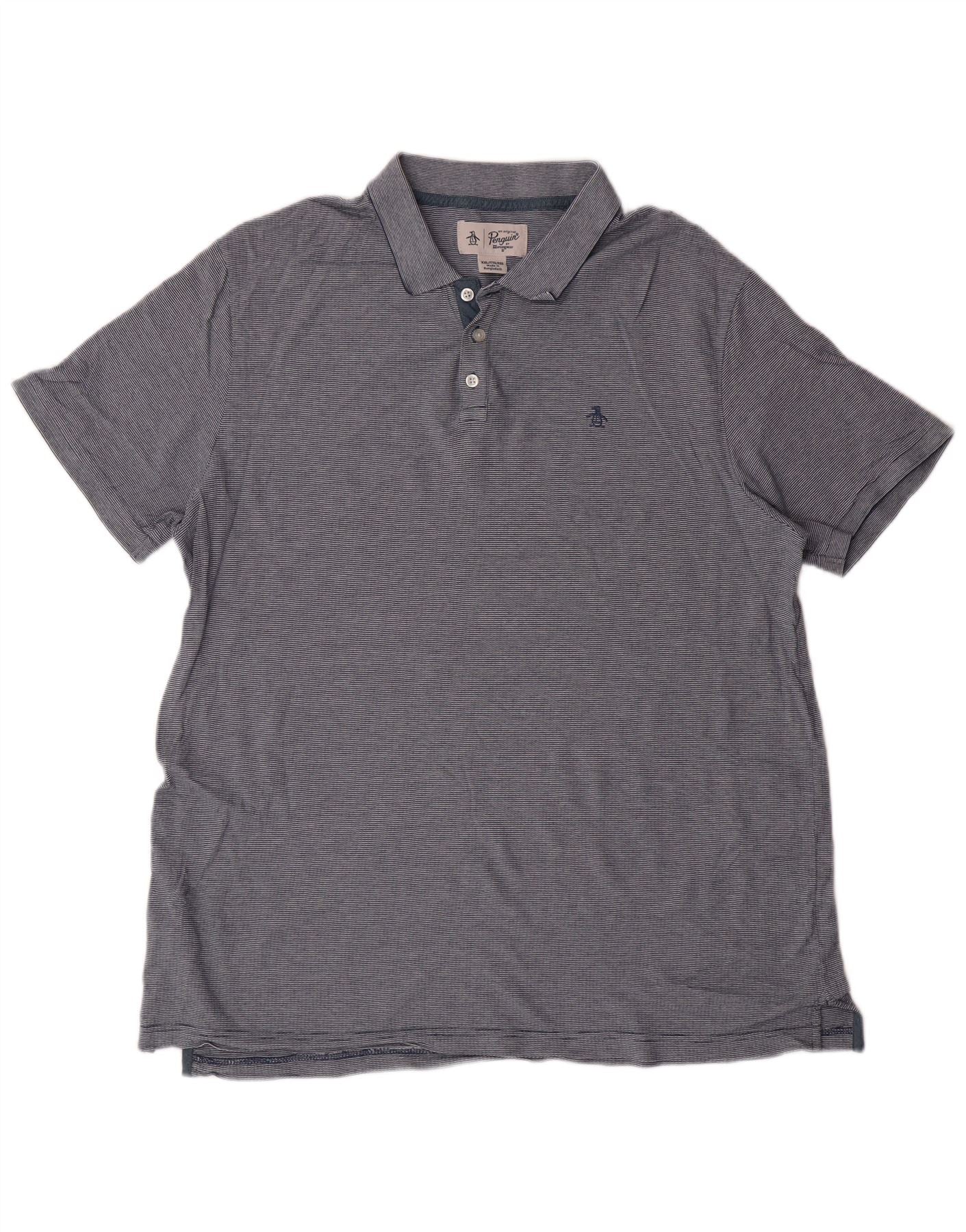 PENGUIN Polo Shirt til mænd 2XL Blå Stribet Bomuld Klassisk
