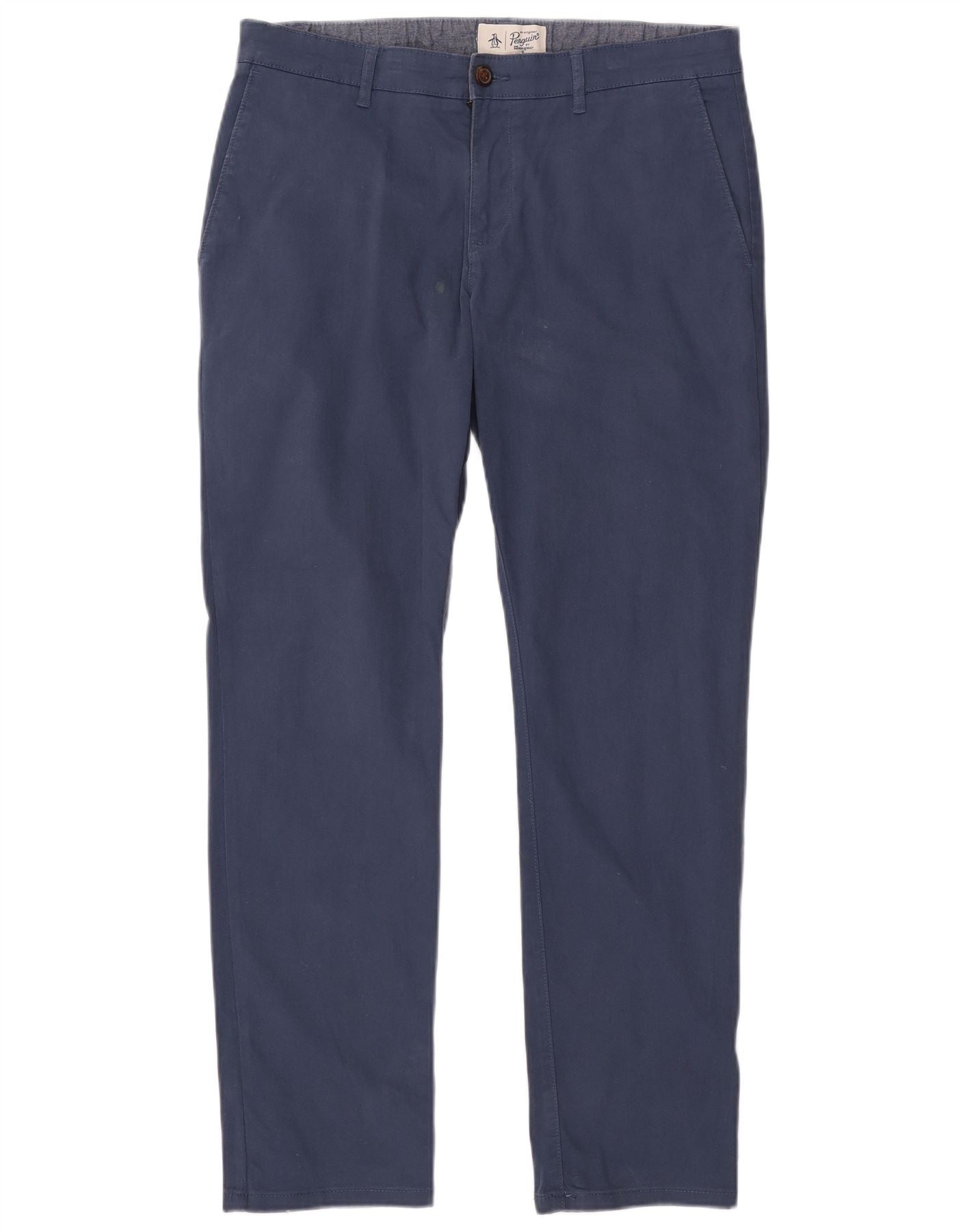 PENGUIN Herre Slim Chino Bukser W34 L32 Marineblå Bomuld