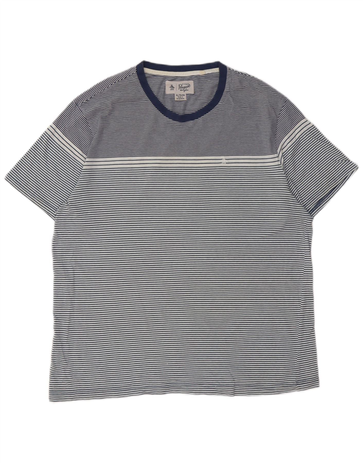 PENGUIN Herre høj T-shirt top XL marineblå stribet bomuld