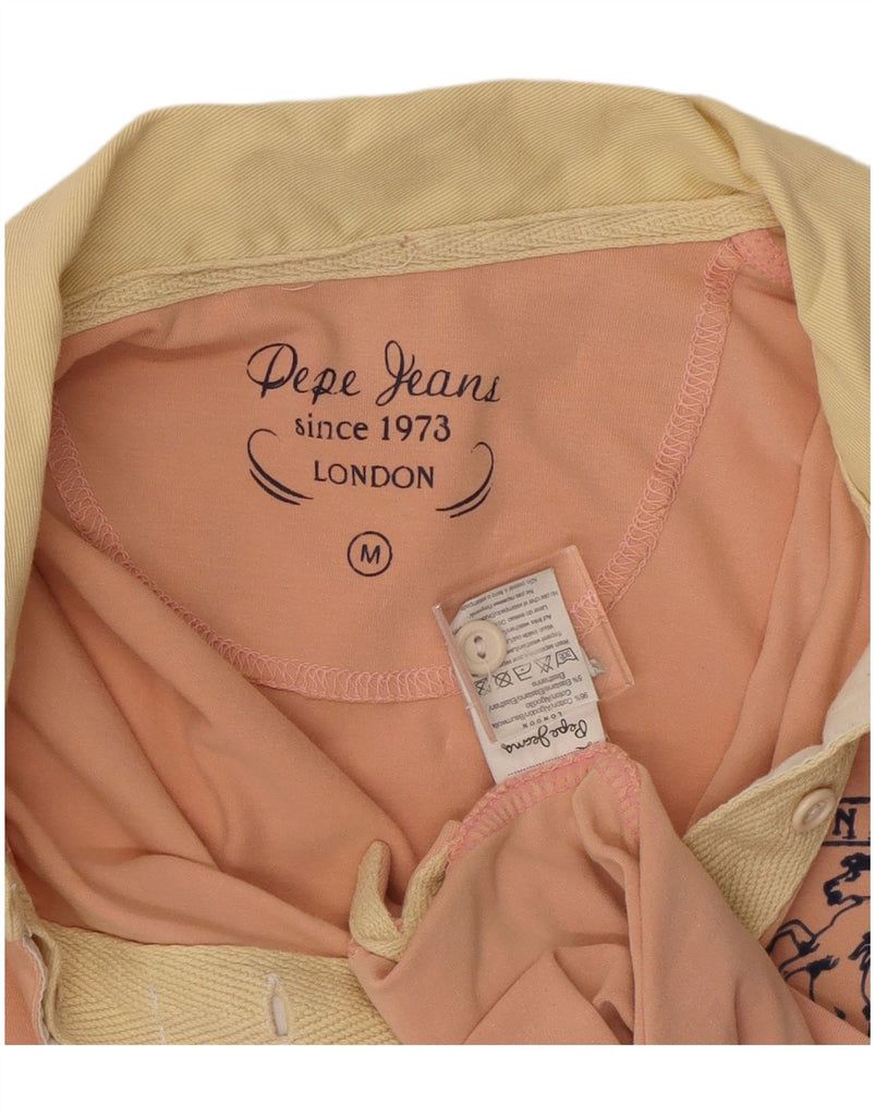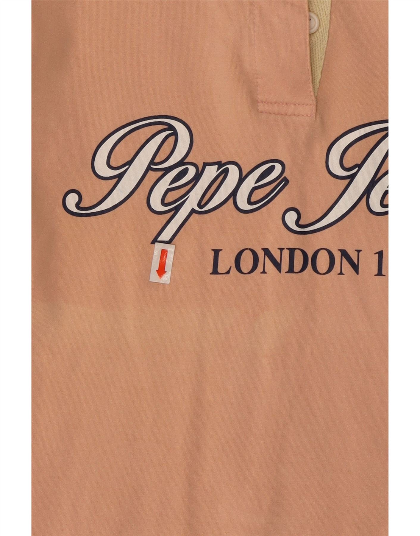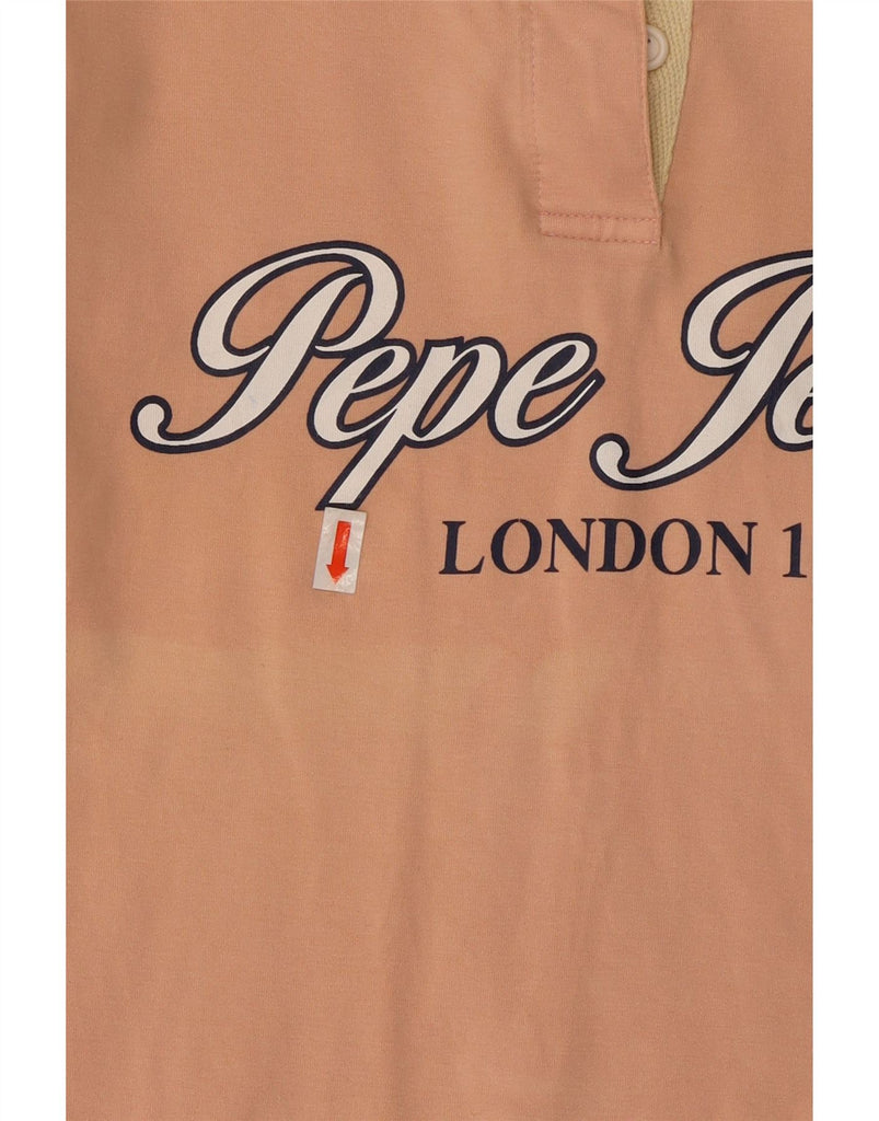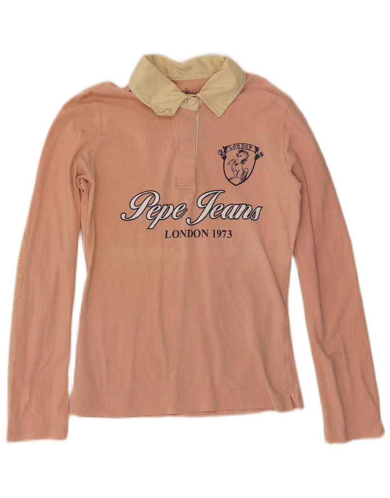 PEPE JEANS Womens Graphic Long Sleeve Polo Shirt UK 12 Medium Pink Cotton